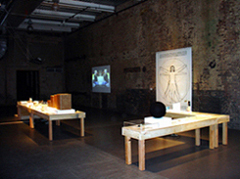 Expectations: How does one become what one is? (2004) also followed in this legal vein. Presented at the Museum of Contemporary Art in Chicago, this multi-media installation project collaborated with an estate attorney to acquire a legal last will and testament for two selves living in one body. Comprised of videos and bequeathed objects, this installation explored the task of defending oneself after death. Specifically created for The Drawing Center, Witness to a Social Drawing (2005) collaborated with the Illinois Office of Secretary of State to legally prepare a peace accord for a doubled body. Comprised of notarized documents, sculptural artifacts, and video recordings, this installation explored the potency of contracts and self-preservation. Recently created for MASS MoCA, Drawing and Being Drawn (2007-2008) collaborated with science, law, and art to legally patent a life-form for a doubled body. Comprised of patent drawings, sculptural prototypes, and video recordings, this multimedia installation not only explored the moral and political implications of recent advances in biotechnology, but it also investigated the act of invention and examined the limitations that exist within intellectual property.