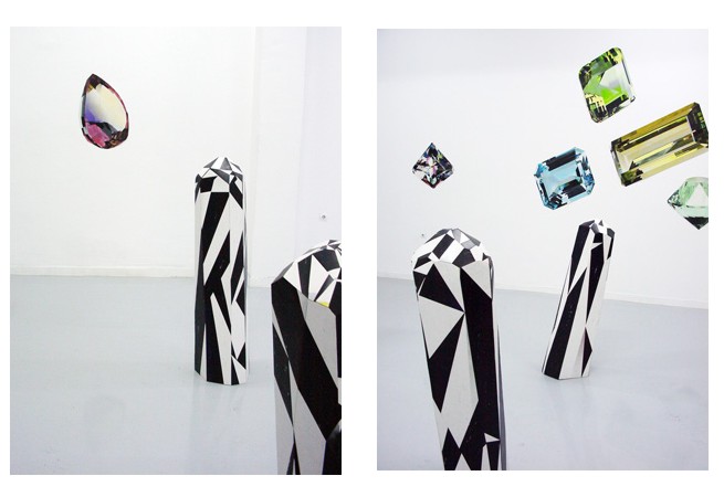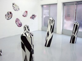 Luke Dowd�s work refers to concentrations of energy and forms to refract light, with ironic references to power and healing. IMAGES : Top and left - Installation view at THE BREEDER. Bottom right - Gem No 12, 2004 & Gem No 11, 2004.