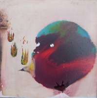 Mocquet�s is a world of animated objects and anthropomorphic animals. Birds, volcanoes and beasts bleed into her raw surfaces. She simultaneously obeys and defies her materials - sometimes creating the illusion of a watercolor, other times letting the viscosity of paint live on its own. Bold and arbitrary gestures operate as starting points to generate imagery and dictate composition � these surrealist devices are utilized to develop her dizzying brand of anti-narrative.