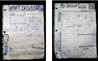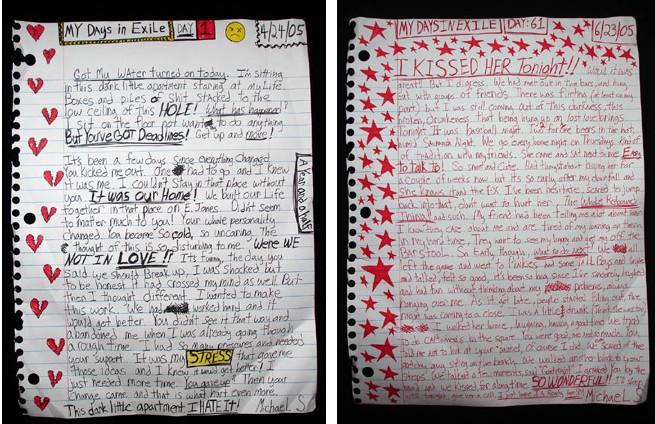 Images : (L-R) from top Michael Scoggins, My Days in Exile: Day 1, 2006 marker, prismacolor on paper, 67 x 51� Michael Scoggins, My Days in Exile: Day 61, 2006 marker, prismacolor on paper, 67 x 51� Michael Scoggins, My Days in Exile: Day 5, 2006 marker, prismacolor on paper, 67 x 51� Michael Scoggins, My Days in Exile: Day 28, 2006 marker, prismacolor on paper, 67 x 51� Michael Scoggins, Rainbow Wing, 2006, marker, prismacolor on paper, 67 x 51� Michael Scoggins, AAAGH!, 2006, marker, prismacolor on paper. 67 x 51� |