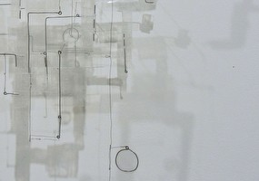 "Outline" wire and tape variable dimensions 2012 ..................................................................... My prints are explorations of the power of point, line and plane. They are inspired by diagrammatic representations (i.e. musical notation, architectural schematics and mappings). Diagrammatic representations use simple sets of visual elements to convey highly complex realities. Depending on the arrangement of the elements, dramatically different realities can be conveyed. The same elements can be used to represent music, architecture, engineering, astrophysics and even the written word. |