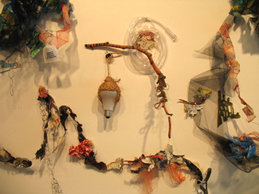 in PULSE: Change & Uncertainty, Chapter II Einstein explores the tension and harmony between the formal and the familiar, the synthetic and the natural, destruction and creation. This is an ongoing installation just exhibited for the second time,in As You Like It, Heidi Cho Gallery, Chelsea, NY detail of 10' x 13' x 18" installation |