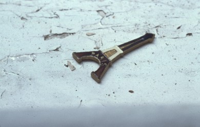 'Wendy Lewis could be the Madame Tussaud of the inconsequential. Taking something perfectly ephemeral - a scrap of paper, a chip of wood, a small ornament - she makes a balsawood and paint facsimile of it, perfectly, so you can't tell unless you look really closely, and then why would you want to, unless you already knew? This curious circuit of not knowing, already knowing and not needing to know creates an odd disturbance in your sense of what makes things worth doing. They're not even obsessive or ultra-detailed to the point where you'd think the artist was intensely committed to all things tiny in a crazy way. They are just so well made they disappear even though you can still see them.'