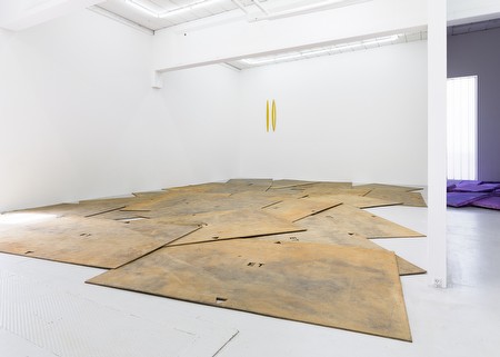 GARDAR EIDE EINARSSON DISTINCT FUNCTIONAL LAYERS HELP ESTABLISH HIERARCHY AND ORDER 29.01 - 09.04.2016 Text by Angus Cook One thing is for sure: the blue lights are no metaphor for mind-control. Rather, questions of mind-control may be understood as a metaphor for the bidirectional relationship of artwork to viewer. Is it mere coincidence that blue and pink are the colors with the most compelling scientific evidence to support their use as medicine? That they are similar in this respect is somewhat curious because these particular colors strike me as more chromatically polarized than black and white or red and green. Color as medicine is a strange idea. But not as strange as color as medicine as art. The installation is composed of juxtapositions-visual, cognitive, emotional. Painting and sculpture. Stable and unstable. Daydream and nightmare. Appearance and reality. Freedom and control. Public discourse and the world of the imagination. Life and death. These and other polarities, whose mutual incompatibility is emphasized by way of their juxtaposition, are simultaneously merged by the closeness of their contact, and exchange then lose their ostensible identities. The tension that is created by this system of opposing forces produces an instability that becomes both an integral part of the structure, and the energy that ultimately undermines it. The destructive instability is in turn counteracted by further emergent layers. Difference becomes sameness, as sameness becomes something else again. The very principles of juxtaposition, by which the installation operates, are counteracted by that something else again. Nothing is as it seems because nothing is allowed to stay the same-visually, cognitively, emotionally. About the exhibition The exhibition presents a new installation and works on paper. The installation consists of three light posts, each with four blue LED lamps of a kind used on specific train stations in Japan. The supposed anti-depressive color of the light is intended to reduce the number of suicides committed on these stations. The paintings on paper are created using fluorescent pink paint. The exhibition is Einarsson's fourth solo exhibition in the gallery. Einarsson has previously had solo exhibitions in institutions such as ARoS, Aarhus Art Musuem, DK, Bergen Kunsthall, NO, Kunsthalle Fridericianum, Kassel, DE, Bonniers Konsthall, Stockholm, SE, Reykjavik Art Museum, IS, Astrup Fearnley Museum of Modern Art, Oslo, NO, The Modern Art Museum of Fort Worth, US, Centre d'Art Contemporain, Geneve, CH, Museum St. Louis, US, Frankfurter Kunstverein, DE, Swiss Institute, New York, US amongst others. Einarsson lives and works in Tokyo. |