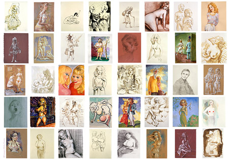 JOHN CURRIN Works on Paper A Fifteen Year Survey of Women June 19 - August 21, 2009 Main Gallery With a checklist of 77 works from over 50 individual and institutional lenders, Andrea Rosen Gallery is delighted to present the most comprehensive exhibition of John Currin�s works on paper to date, giving the viewer an opportunity to experience his mastery of an extraordinary breadth of style and technique. Carefully selected from every work on paper in Currin�s oeuvre, this exhibition is both an extensive overview of the artist�s complex use of the genre as well as an in-depth study of the artist�s engagement with the female body as subject, object, and formal foil within his practice. While the exhibition represents every period of Currin�s works on paper, it is by narrowing the focus to what clearly emerges as his principle subject that we hope to unveil how the artist�s depiction of women throughout his work is a strategy he employs to blur and even confuse subject matter and form. As the most traditional of subjects, one would anticipate that the female body would become the most banal of images; however, it remains continually distracting in its physicality, compelling as the perfect metaphor, and hauntingly mysterious in its assumed knowability. Currin is interested in how a viewer�s attention can be consumed by subject matter. Like his paintings, it is often assumed that the strong visceral response to Currin�s works on paper is triggered by the imagery, however, Currin and his work strongly argue that even more than images it is the powerful influence of form and style and technique that generates an emotional viewing experience. As we have become more obsessed with receiving information through images, we have become less aware of our visceral response to form. This exhibition is not only a survey of women, depicted over 15 years by Currin, but also an opportunity to survey the emotional and psychological landscape mapped out in the vagaries of line and material, of composition and structure. What is so rich and important about Currin�s works on paper is that they are significant both as an autonomous body of work as well as essential and critical to the invention of the paintings and the development of ideas. We purposefully chose the period between 1992 and 2003 because it represents the most active part of Currin�s drawing practice. It is not by chance that after 2003 Currin only released three works on paper; since around 2001 he began to utilize digital imaging tools as a way of developing non-art source material. Until then, along with references from magazines, works on paper were always the first step in developing bodies of work and the artist�s means for exploring new directions in content, imagery, and form. These creative phases yielded not only new ideas but also complex and thorough bodies of works on paper. While the use and methodology of the process of drawing has an even broader use in the studio, every work on paper released into the world (and therefore every example in this exhibition) is intended as a work of art. When Currin decided to make a drawing versus a sketch there was always a dual consciousness of working process and formal resolution. An interesting illustration of this is the entry in Currin�s most recent monograph, published by Rizzoli, of one of his most famous paintings, �Heartless,�1997. Next to the painting, the artist included two images: one a non-work, a sketch from 2002 depicting a figure with a hole through her head and the other, �Untitled,� 1997, a delicately rendered and fully resolved sepia ink drawing which Currin considers an independent artwork. It is also interesting to note that this drawing is one of only around seven in the exhibition that could be considered an actual study for a painting. Since, as the exhibition reveals, while they are certainly recognizable as Currin in every way and relate to the paintings, the works on paper retain their own significa nt territory and are very rarely direct prototypes. Much more so than his paintings, Currin�s works on paper are often vehicles for purposeful extremes, from the most beautiful line to the rawest. As well as experiencing the works, the exhibition allows viewers to become privy to the timeline of ideas and what Currin chose to pursue in his paintings. It is interesting to see which subject matters and formal techniques are prevalent over time. One powerful example to think about is the large balloon-breast paintings like �Jaunty & Mame,� 1997 or �The Bra Shop,�1997 of which, while extremely central to Currin�s work, there are only five paintings that fall into this category; yet, this exhibition shows that he started making drawings in this vein as early as 1987 and have remained prevalent in his drawing practice until 1998, existing in almost every medium: charcoal, ink, pencil, gouache, watercolor, and sepia toned ink. Another example of an equally prevalent figure in the works on paper is what could be referred to as the hobo. While there are only two hobo paintings in Currin�s oeuvre, �The Hobo,� 1999 and �Sno-bo,�1999 , this show includes a dozen variations on paper from the highly refined to the purposefully deformed. The rawness of the works on paper unveils some of the more aggressively grotesque elements (sharp elbows, distended bellies, sagging breasts) in the exquisitely rendered paintings. Walking around the room, each of the 17 groupings adds another piece to a deeper understanding, each with its own function. Some explore the use of a single stylistic strategy. For instance, one group of nine works representing a four year period between 1998 and 2001 that while quite varied in both subject and form, show a technical use of transparency and cross-hatching that both embellishes and distorts. There are a number of instances where one group helps inform another, in this case, the distortion of the image creates