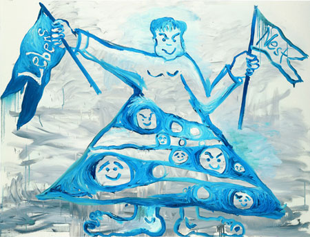Bendix Harms Lebenslieben September 5 � October 4, 2008 August 1, 2008, New York�For his second solo show at Anton Kern Gallery, German artist Bendix Harms has put together a body of paintings and drawings called Lebenslieben or Loves of Life. The exhibition opens September 5 and continues through October 4. A 32-page, fully illustrated catalog will be available. Harms' paintings confront the viewer with their nakedness. Stripped down to the bare essentials of painting, each work displays one image-idea, a precise title, a reduced palette of one color and black on white ground, loose and swift brushstrokes. They are typically done in one session, without corrections, but with a whole lot of determination. Each painting unveils the emotional bare skin, the life-story of the artist, while elevating it to a universal level where the viewer's subjective response to this psychological nakedness can stimulate feelings of liberation, and even shame. Love, grief, yearning, and a pointed zest for life define the artist's world, a quest for the naked truth and paradisiacal bliss. Of course, the title Lebenslieben, the artist's Loves of Life, underlines this desire for life, for the new, for the future. Like tropical birds, the paintings strut like the cocky male of the species, brightly colored � red, purple, green, blue. Their beauty ensures ongoing life, attracting a mate for procreation, and waiting for the female to help protect the nest of eggs and offspring. Harms studied at the Hochschule f�r Bildende K�nste (HfBK), Hamburg. His work has been exhibited at the Hudson Valley Center for Contemporary Art (2007), the Prague Biennial (2005), the Tirana Biennale (2001), and in gallery shows in Munich, Copenhagen, Madrid, Hamburg, and Cologne. He lives and works in Hamburg, Germany. |