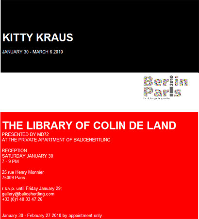 BALICE HERTLING: KITTY KRAUS THE LIBRARY OF COLIN DE LAND - PRESENTED BY MD72 - 30 Jan 2010 to 6 Mar 2010 Current Exhibition |