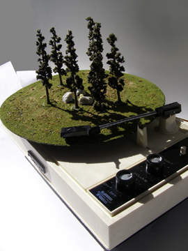 March 14 - May 25, 2008 KIM HOLLEMAN Law of the Land Black and White Gallery // Williamsburg is proud to announce the opening of the spring/fall 2008 exhibition program with Law of the Land by Kim Holleman. Are we living on the cusp of an Age of Extinction or an Age of Restoration? Are there sophisticated ways of designing aspects of the human enterprise - buildings, vehicles, technologies, cities, parks, etc. � so that they intelligently interact with living systems? The works of Kim Holleman reveal an interest in following nature�s operating instructions to build environmental scenarios that can lead to healing the earth and supporting all beings in a symbiotic harmony. In this site-specific multi-media exhibition occupying both the interior and exterior spaces, such conceptions are put under scrutiny and given visual representation. Law of the Land is structured in three 'acts'. The first act, Trailer Park installed on the street in front of the gallery and open to the public examines the paradox of inner/outer space by sheltering the completely functional �real� park from environmental damage and placing it inside a mobile Coachmen Travel Trailer. In the second act, Playing God, installed in the indoor space, Holleman simulates natural environments to question human attempts to dominate the earth. Detailed miniature landscapes that are playable vinyl records spinning and stopping, atop turntables reinforce the �playing god� theme. In the pastoral wall-mural landscape entitled The Layers, Holleman rises to the challenge of establishing a human connection to the earth's most interior and vulnerable layers. This work draws analogies of various soil substrates to the emotions of human psychology, suggesting an allegorical �earth-body interface� to help bridge the human-soil divide. Creation myths and origin of life theories aside, it is obvious that our own fertility, and indeed survival, is inextricably connected to the fertility of the soils we live upon. In a provocative series of glass microscopy slides titled Creating Life, Holleman asks how far we want to go in creating a �better life�. When blown up into large-size photographs, they unmistakably look like the familiar microscopic images of living organisms: protozoa, bacteria, blood cells, spores, mold, ice crystals, etc., but are all created out of artificial substances. In the third act, Future Mountain, Holleman appropriates the monumental format typical of earlier earth works to reclaim the outdoor space. Sculpting with chicken wire and colorful, ubiquitous plastic shopping bags, the artist constructs a startling 360-degree mountain range foliated as a life-like landscape. Future Mountain does not offer solutions to difficult environmental dilemmas. It communicates and connects environmental realities to a social and cultural context. Kim Holleman was born in Tampa, Florida and raised in the suburban area of Palm Beach Gardens. She attended The Cooper Union for the Advancement of Science and Art in New York City and The Rietveld Academie in Amsterdam, Holland. Her work has been exhibited at The Storefront for Art and Architecture in New York, The Boulder Museum of Contemporary Art in Colorado, and The Kohler Arts Center in Wisconsin. . . Law of the Land is Kim Holleman�s first solo show in New York. |
