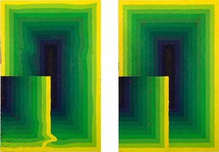 Julian Hoeber June 6 - July 13, 2013 Opening reception: Thursday, June 6, 6-8 pm Blum & Poe is pleased to announce our fifth solo exhibition of Los Angeles-based artist Julian Hoeber, who continues his investigation of intuitive processes within geometrical compositional systems. The exhibition includes paintings, sculpture and installation and will examine the construction of a body in space and how consciousness is affected under varying physical circumstances. Hoeber partitions the first gallery into two nearly identical halves. The first will contain paintings from Hoeber's series Execution Changes with their strict mathematical configurations and lush color schemes and textures. The other side will present their misshapen, distorted twins. The pairs of paintings are created simultaneously, beginning with identical underlying structures. However, Hoeber pushes his intuition and process so that the scheme begins to break down in the warped double. The divided gallery alludes to numerous dualities in how we conceive of the mind: conscious/unconscious, rational/irrational, and left hemisphere/right hemisphere. The next gallery will debut an installation, which utilizes modernist forms to create a space that activates the uncanny. Viewers will enter a corridor with intense colored lights. As one progresses through the hallway, the walls become lined with mirrors. The interior chamber, which is completely mirrored, reflects and fractures the viewer's sense of self to the point of disorientation. This small room will include a white noise machine, a hallmark of a therapist's office, as well as a few plants and two chairs for people to engage in discourse. However, these allusions to comfort do not compensate for the overall uneasiness one feels in what Hoeber has dubbed a "self-consciousness machine." The exhibition will also include a sculpture made from a large, elegant table, which serves as a base for approximately fifteen self-portrait busts in differing deformed conditions. The heads sit on progressively higher pedestals in a stepped pattern. Although finely crafted, the grotesque heads serve as metaphors for other psychological references within the exhibition. The repetition of the initial self-portrait, prior to its mutilation, resonates back to repeated elements within the Execution Changes series and the reflected images of the "self-consciousness machine," tying the works together in a heady psychological conundrum. In conjunction with the exhibition, Blum & Poe is proud to publish Hoeber's first monographic catalogue, the most comprehensive examination of the artist's work to date. The book will include essays by the distinguished writers Douglas Fogle and Jonathan Lethem, approximately 70 images of current and past work, a checklist of the exhibition, and a complete bibliography. Copies will be available in October. Julian Hoeber (b. 1974) holds a B.A. in Art History from Tufts University, a B.F.A from the School of Museum of Fine Arts, Boston, and an M.F.A. from the Art Center College of Design, Pasadena. His work has been included in exhibitions at the Rubell Family Collection, Miami, FL; Western Bridge, Seattle, WA; Hammer Museum, Los Angeles, CA; Santa Monica Museum of Art, Santa Monica, CA; and Deste Foundation Centre for Contemporary Art, Athens. K�ji Enokura June 6 - July 13, 2013 Opening reception: Thursday, June 6, 6-8 pm Blum & Poe is very pleased to present a solo exhibition of K�ji Enokura (1942-1995), one of the key figures of Mono-ha, a group of Tokyo-based artists who radically redefined Japanese art during the late 1960s and early 1970s. This is Enokura's first solo exhibition with the gallery and his first solo presentation in North America. The Mono-ha artists explored the encounter between natural and industrial materials. Often laid directly on the floor or ground, these ephemeral arrangements emphasized not only their respective material qualities but also the interdependent relationships generated by specific placements within a space. At times discreet and at times physically commanding, Enokura's work is emblematic of this approach. From the beginning of the 1970s, he stained paper, cloth, felt, and leather with oil and grease. He also discolored the floors and walls of galleries and outdoor spaces. Through interventions such as these, he sought to affirm his own place in the world. In his writings he stated, "It is the tension between the body and the material that interests me, and that's what I want to explore. It attests to the consciousness I have of my own existence." This exhibition features photographic documentation of his early installations, as well as cotton-fabric works from the 1980s and 1990s in which Enokura continued to explore the act of staining. The artist variously contrasts smooth fields of black paint with unpainted fabric, drenches the entire surface, or uses oil-soaked beams of lumber to mark the fabric -- either affixing the beams to the work or leaning them against it. Also included in the exhibition are some of the artist's signature fabrics hung diagonally on the wall and folding out onto the floor, as well as Intervention No.13 (1988), a particularly rare canvas that bears a paint-splattered glass bottle filled with oil and sand. Previously, Enokura was featured in the award-winning survey Requiem for the Sun: The Art of Mono-ha, curated by Mika Yoshitake, assistant curator at the Hirshhorn Museum and Sculpture Garden, held at Blum & Poe, Los Angeles and Gladstone Gallery, New York in 2012. He will be included in Prima Materia, a large-scale group show scheduled to open May 30, 2013 at the Punta della Dogana, Venice, Italy. Enokura received an MFA in painting at the Tokyo National University of Fine Arts and Music in 1968, and taught there from 1975 until his death in 1995. During his lifetime, he had numerous solo exhibitions at Japanese galleries and museums, including the Saito Memorial Kawaguchi Museum of Contempor