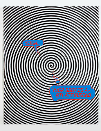 Julian Hoeber All That is Solid Melts into Air September 6 - October 18, 2008 Opening Reception: September 6, 2008 6 - 8pm This new body of work is an old tattered body. Totally classical forms. Forms that keep threatening to die. And even if they survive, they are sullied with the look of death. Hence bronze figurative sculptures riddled with bullet holes. Hence optical art mashed together with trompe l'oeil painting with psychology pushing through the surface like the ribcage of a decaying corpse. I don't think of myself as a whole and unique identity. I do however consider myself to be a very specific location through which a unique set of ideas, experiences, feelings and influences pass. The best model of a person is a tube. Stuff goes in and stuff comes out. A lot of stuff has gone into me over the years. A mashed together version of all of it is what I try to squeeze out. So the stuff that went into my tube: Bridget Riley, Camille Claudel, Judy Chicago, Valie Export, Barbara Kruger, Roy Lichtenstein, Thomas Eakins, Arthur Fellig, Christopher Wool, Sterling Ruby, DJ K-Swift, Santogold, Melanie Klein, Cy Twombly, Hermann Nitsche, Chris Vasell, Lucio Fontana, Paul Cezanne, Mark Quinn, Nate Lowman, Barnett Newman, Elaine and Saul Bass, Giulio Questi, Herschell Gordon-Lewis, Jean-Luc Godard, Paul McCarthy, Jim Shaw, Niki de Saint Phalle, Jesus Rafael Soto, Kori Newkirk, Jasper Johns, Kenneth Noland, Cady Noland, Tony Tasset, John Stagliano, Diplo, F. X. Messerschmidt, Tony Cragg, Alfred Hitchcock, David Simon and Ed Burns, Lucian Freud, Sigmund Freud, John Cassavetes, Robert Bresson, Vito Acconci, Harlod Brodkey, Mike John, Sasha Grey, M.I.A, The Minutemen, Marina Abramovic and Bruce Naumann. I could go on. And on. But the thing is the forms I love most are those old ones. And the first thing that ever fed my tube was my mother, she the child of card-carrying members of the communist party, and my father a bureaucrat who was also an actor in the theatre. He practiced two arts one of fighting stasis and one that is dead. I am in this sense a relic--one that believes in old forms and old ideas, or at least was inundated with them. And those forms and ideas are dying. I'm not gonna fight it too hard. But I will be true to the tube that I am. I was once told by a raw food nutritionist that if you eat live things you will be full of life. If you eat dead things...well you can figure it out. If there's anything that I�ve properly digested, it's post modernism, that silliness. The pastiche of references that once was the center of art making had as its subject matter the very act of pastiche. David Salle's work was empty except for the fact of the conglomeration of things that he smashed together for no good reason. For those whose stock and trade was the readymade, from Duchamp to Koons, the subject matter was the absurd gesture of appropriating an industrial object. But at a certain point sculptors of my generation realized that Koons' basketballs were no more remarkable for the fact that they were appropriated than Judd's plexiglass and stainless steel angle iron. The product of an anonymous manufacturer is whatever. Basketballs and urinals are just more material. At a certain point I think art works started to take on this quality of anonymous product. I'm not referencing Bridget Riley in my work any more than Judd was referencing the industrial designer who developed the process by which aluminum rod is extruded. I've eaten up all that dead stuff. Cooked it. Chewed it up and made some shit out of it. I've chewed up history, digested it and pushed out something which although stinking a little of death, has a certain whole synthesized, digested quality. And like the any other shit, you could find more different strands of DNA in it than in its producer. - Julian Hoeber Blum & Poe is pleased to announce our third solo exhibition of Los Angeles based artist Julian Hoeber. The exhibition will include two new bodies of work, the first a series of fifteen works on paper that continue Hoeber�s investigation of psychology and nausea through perceptual tricks. Hoeber will also present a series of ten unique bronze-cast heads, a darkly humorous and absurd evolution of classical sculptural busts that have been shot, beaten and bitten. Prior to earning his MFA from Art Center College of Design, Julian Hoeber attended the Karel deGrote Hogeschool in Belgium and received degrees from the School of the Museum of Fine Arts Boston and Tufts University. Hoeber has exhibited internationally, a recent selection of venues include Parc St. Leger Art Contemporain, Pougues Les Eaux, France; LACE, Los Angeles, CA; Deste Foundation Centre For Contemporary Art, Athens Greece; Today Art Museum, Beijing, China; and Emily Tsingou Gallery, London. Biography JULIAN HOEBER Born: Philadelphia, Pennsylvania, 1974 Education: Art Center College of Design, Pasadena, CA, M.F.A. School of the Museum of Fine Arts, Boston, MA, B.F.A. Tufts University, Medford, MA, B.A. in Art History Karel deGrote Hogeschool, Antwerp, Belgium Lives and works in Los Angeles, CA One-Person Exhibitions 2007 The Armory Show, New York, NY Galleria Francesca Kaufmann, Milan, Italy 2005 Talkers are No Good Doers, Blum & Poe, Los Angeles, CA 2003 Essor Gallery, London, UK 2002 Killing Friends, Blum & Poe, Santa Monica, CA Group Exhibitions 2008 Parc St. Leger Art Contemporain, Pougues Les Eaux, France Against the Grain, LACE, Los Angeles, CA (curated by Christopher Russell) 2007 Panic Room - Works from The Dakis Joannou Collection, Deste Foundation Centre For Contemporary Art, Athens Greece Today Art Museum, Beijing, China Trudi: No Jerks, Rental Gallery, NY (curated by Catherine Taft and Matthew Chambers) 2006 Dark Places, Santa Monica Museum of Art, Santa Monica, CA A Selected State, Emily Tsingou Gallery, London JSA (Jim Shaw�s Army), Rental Gallery, Los Angeles, CA many, many guys and girls, all real beauties, Circus of Books Gallery, Santa Mon