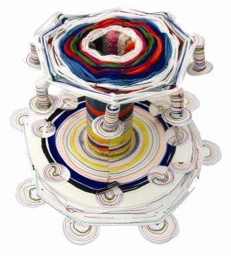 Kaleidoscope presents a world where forms come into being and are repeatedly reconfigured. To-ing and fro-ing between media and dimensions creates a narcissistic world that turns in on itself � each new form evolving out of its predecessor, attempting to replicate, but failing. Failure is catalyst. Always dissatisfied, the work seeks new guises in which to appear, paradoxically emerging as a seemingly joyful and celebratory spontaneous life that virally mutates. It is unclear whether things are coming together or falling apart. Falling in and folding up is cyclically followed by an unravelling, unfolding; a falling away from a centre, as if to reveal its component parts. Kaleidoscope alludes to the cosmic formations of worlds and to the abstract language of physics and mathematics. In the context of Imperial College, the work hints at atom-smashing, the geometry of fusion reactors, or of patterns of atoms and molecules coming together to form galaxies. Small and domestic in scale, and using appropriated ready-mades that are near to us, these works paradoxically allude to the very large and the far-flung. Extreme difference is at the heart of Mitten�s practice, the absurdity of which is accentuated by a fixed palette of play. The saturated, artificial colours of felt-tip pens and domestic materials are at odds with the sophisticated tools and equipment found within the world of science. Kaleidoscope follows Eye Chamber at 10x10 Projects, HOUSE Gallery, Camberwell (26 September � 8 October 2007) where a small-scale object acts as a key, a seed that contains the ingredients out of which Kaleidoscope unfolds. |