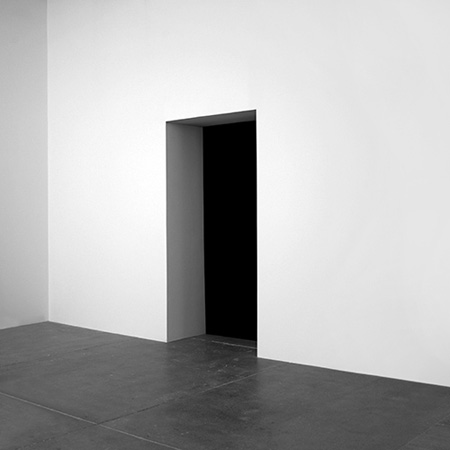 CRG opens its doors in March with Jim Hodges. The exhibition space has been transformed by two new major works. In one room of the exhibition, walls have been removed to allow natural light to reflect on the faces of 10 canvases that form a singular freestanding sculptural work titled �and still this�. Each canvas is connected to the other creating a semicircle or arc. The surfaces have been gilded with 24k gold leaf and range in size sequentially; each being reduced in both dimensions in equal increments progressing from largest to smallest. The imagery is defined through multiple layers of gold leaf and varying texture to produce an array of patterns and pictorial renderings that range from those that Hodges has used in the past, such as shapes inspired by camouflage and other patterns found in nature to heavenly bursts of light or sun shining through formations of clouds and atmosphere. The second work in the exhibition, titled 'the dark gate', stands centrally in a separate darkened room where the only source of light emanates from a single light bulb within a massive square wooden box. On one side of the box two double doors open to reveal its interior. From here the viewer can see that the back of the box is open, though bordered by a number of large sharpened steel spikes that converge from the perimeter of the box's opening to its center; hindering the viewer from passing through. For the duration of the exhibition a perfume made by Hodges will be applied to the spikes daily. In addition to the two focal works there will also be recent works on paper on view. |