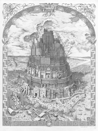 Butt Johnson: The Name of the Rose Jan 14-Feb 19, 2011 Opening reception Jan 14, 6-8PM Butt Johnson's first solo show at CRG Gallery, The Name of the Rose, will feature drawings that fuse the idioms of old master drawings and engravings with a subject matter both contemporary and allegorical. In employing the visual language of engravings writ in the modern medium of ballpoint pen, Johnson generates a hybrid form of imagery, allowing the drawings to function as present-day artifacts from a bygone era. The title of the show references Umberto Eco's 1983 novel of the same name, and like Eco's story of monks struggling through a semiotically enhanced medieval world, Johnson's drawings can be looked at as a visual onion from which layers of associations can be peeled, deconstructed, and examined. Each drawing in the show, some of which have taken as long as two years to complete, functions as a kind of treatise, exploring a diverse range of overarching themes from love to war to cartography to architecture, and pointing to the history of learning and knowledge as it is processed through American popular culture in the age of video games and the Internet. The work in the show spans a seven year period of production, and the extent of themes covered in the show vary widely. Unrequited Love (2003-2005) uses the S.E.T.I. project (Search for Extraterrestrial Intelligence) as a metaphor for its titled subject and contains the S.E.T.I. screensaver (an early example of distributed computing), as well as a traditional Dutch flower arrangement, interspersed with images of neurobiology andspace exploration, hearkening to questions of solitude both personal and celestial. A large scale drawing of a map of the world, entitled The Ambassadors (2008), fuses together the popular board game RISK with J.C.R.Columb's 1886 map of the British Imperial Federation and the 1990's arcade game Street Fighter II, while Starchitects (2009-2010) (a contemporary colloquial for very famous architects) depicts a version of the Tower of Babel derived from the PC game Civilization III that ascends through architectural history into the sky. The show also features multiple drawings of roses, here taken as a poignant symbol of the flexibility of meaning-- as in the last line of the Eco's novel, Stat rosa pristina nomine, nomina nuda tenemus: "Yesterday's rose endures in its name, we hold empty names". This can also be said to apply to the name of the artist, a mutable symbol full of vulnerability and potentially dubious import. CRG GALLERY 548 W 22nd St, New York, NY 10011 T 212-229-2766 F 212-229-2788 www.crggallery.com Transportation: C and E trains to 8th Ave at 23rd St / M23 Bus to 10th Ave and 23rd St |