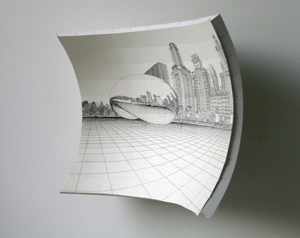 The Oakes Twins Curated by Lawrence Weschler September 9th – October 29th, 2011 (Opening reception Saturday, September 10th, 6-8pm) “The twins are able to trace the visual world before them, as if with a camera obscura or camera lucida, though in fact without any equipment whatsoever beyond their own visual cortexes—as one of the most significant breakthroughs in the depiction of visual space since the Renaissance…” —Lawrence Weschler Ryan and Trevor Oakes steadfastly pursue a deep and intimate understanding of visual perception and depiction, their investigations generally taking the form of drawings, paintings and sculptures consisting of various media that function as solutions for the questions and tests they propose for themselves. Intellectually rigorous and truly collective in their process, The Oakes Twins’ ambitious practice involves ongoing conversations surrounding concepts like peripheral vision, depth perception and light phenomena coupled with methodical, laborious studies that often involve long hours and much practice. The result is invariably impressive and visually stimulating, precise beyond what one would think possible and clear in the amount of minute detail and time put into every aspect of their work. Bringing It All Back Home: The Cooper Union (left, 2009-2010) is a product of The Oakes Twins’ interest in binocular vision. Namely, the phenomenon that occurs when you look past an object in the foreground to focus on an object further away and the object in the foreground is split in two and both objects become transparent. The artists learned that by harnessing this double-image vision, made possible with a customized, curved easel and attached, rotatable head rest, they could depict what they see in remarkably accurate proportion and perspective. By drawing a bustling area of New York City full of pedestrians, trees and differing architecture, The Oakes Twins successfully prove that their technique can be applied to the most complicated of scenes. Additionally, the canvas’ concave shape matches the curvature of ones eye, thus allowing for an even greater accuracy in scale and a more realistic experience for the viewer. In Cardboard Sculpture (right, 2003), the artists demonstrate how we see the world through spherical splays of light rays by using layers of corrugated cardboard to construct a curved plane. All of the corrugated tubes within the cardboard aim toward the same center point and, when viewed from that point, the entire piece becomes transparent, while if seen from any other vantage point it seems opaque. On view at CUE Art Foundation, The Oakes Twins’ first solo exhibition in New York, will include over forty examples from their many projects, including sculptures and drawings investigating the physics of light and color, center-points, and other visual phenomena. Through all of these works, The Oakes Twins innovatively share with the viewer what it truly means for us to see. ARTIST’S BIO: Colorado-born visual artists and twin brothers, Ryan and Trevor Oakes, have been engaged in a conversation about the nuances of vision since they were children. They explored their mutual fascination with vision throughout grade school and during college at Cooper Union's School of Art in New York City. Since graduating in 2004, they've continued their dialogue through a body of jointly built art pieces that address human vision, light, perception, and the experience of space and depth in the particular way they have come to understand it. The Oakes' artwork is held in the permanent collections of The Field Museum and the Spertus Museum in Chicago. Their public art projects include a large-scale outdoor sculpture that debuted in Chicago's Millennium Park in the summer of 2009, and is now installed at O'Hare International Airport. They have exhibited and lectured about their artwork across the United States and abroad, most recently working with the Palazzo Strozzi Museum in Florence, Italy, during the summer of 2011. In the fall of 2011 the brothers will do a drawing project at the Getty Center in Los Angeles. In the winter of 2012 they will be in residence creating an installation at The Curtis R. Priem Experimental Media and Performing Arts Center (EMPAC) in Troy, New York. In the fall of 2012 they’re invited back to Florence, Italy, to re-envision an artwork of Brunelleschi, creator of the first perspective experiment on the books, demonstrated around 1425. |