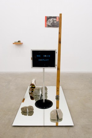 JUDY RADUL 27 APRIL - 9 JUNE, 2012 OPENING RECEPTION: 26 APRIL, 7-9PM Catriona Jeffries is pleased to announce a solo exhibition of new and recent work by Vancouver-based artist Judy Radul, who's ambitious and complex installations of recent years have addressed the generative range and limits of theatrical space and performance. Radul's objects, cameras and performers trade roles, positions and tasks in the spatial choreography of her work, corporeally reanimating subject/object relations as contemporary technology increasingly functions in ways akin to human perception. Theoretically anchored in the discourse around experience and perception developed by Merleau-Ponty and Deleuze as well as recent writing on neuroscience, the exhibition acknowledges the intertwinement between one's own self and the world, while at the same time recognizing the limits of representation to wholly express this togetherness. As art thankfully produces inadequate forms and renditions of perception, the gap between a perception and its perception, a perception and its representation can thus be enacted and preserved. Radul purposefully steps into this gap to conjure joyful 'bad models' of perception in Object Analysis Spectator Poem (2012). A bottle, conch shell, fan, heater, chair, lectern, camera and clay bust all become entities on top of which partial swathes of painted copper sheeting lie across – like pajamas on a radiator – like 'a thing on top of the thing'. To complete Object Analysis Spectator Poem, Radul took the works into the street to be photographed, however direct vision does not suit the encounter she is seeking. Rather, using a mirror held at arm's length the objects are seen as they stood behind her. The image produced is an assemblage of forward and backward views. When installed in a spatial composition with the sculptures, they create a multifarious web of partial views, objects and forms. Two new works, which Radul terms 'displays' rather than 'sculptures', also appear in the exhibition. Motivation (2012) is a collection of small rocks (and some rock-like objects) ordered in a row. Their armature is a tilted plinth constructed at the maximum degree possible before gravity would have its way and the rocks would roll off its surface. Silver Screen (2012) is an ode to curtains, screens, and the thrill of feminist and postmodern theory in the 1980s, incorporating a used theatre curtain and a 1987 copy of the British film journal 'Screen', encased in plexiglass. Although skeptical of the reductionist impulse in much of the writing on science and aesthetics, Radul's interest in 'neuroaesthetics' (an emerging and much contested field which explores the potential neurological basis for aesthetic experience), originated in World Rehearsal Court (2009) through her use of neuroscientist V.S. Ramachandran's mirror box for healing phantom limb pain. Reference to the brain as an image, as well as a source of images, appears in The Brain Display (2010) and Midtown Plaza-end of the autopsy (2011). The new science of the brain is intensively remapping this organ, whose image exists as a kind of ultimate self-reflexive image. Judy Radul born in Lillooet, BC, lives and works in Vancouver) was awarded the DAAD residency in Berlin this year and her major installation World Rehearsal Courttraveled to the Henie Onstad Art Centre, Norway (2011) following its debut at the Morris and Helen Belkin Art Gallery, Vancouver. Recent solo exhibitions include Catriona Jeffries, Vancouver (2007); Oboro Gallery, Montreal (2006); Presentation House Gallery, Vancouver (2005); Set: Room 302 (collaboration with Geoffrey Farmer), Artspeak Gallery, Vancouver (2005); The Power Plant (2003). Her work has been included in numerous international group exhibitions, such as People Things Enter Exit, Catriona Jeffries, Vancouver (2011); Trust, 6th Seoul International Biennale of Media Art, Seoul, Korea (2010); Behind the Fourth Wall: Fictitious Lives – Lived Fiction, Generali Foundation, Vienna (2010); The Thing, Cultural Centre, Mechelen, Belgium, as part of All That is Solid Melts into Air, MuHKA, Antwerp (2009); Acting The Part: Photography As Theatre, Vancouver Art Gallery, Vancouver (2007); Intertidal: Vancouver Art and Artists, Museum Van Hedendaagse Kunst Antwerpen (MuKHA), Antwerp (2005); Videodreams: Between the Cinematic and Theatrical, Kunsthaus Graz, Austria (2004). She recently co-edited the book A Thousand Eyes: Media Technology, Law and Aesthetics published by Sternberg Press and a major monograph on her work, Judy Radul: People Things Enter Exit, was published by Presentation House Gallery in 2010. For further information or press enquires please contact Catriona Jeffries or Anne Low at +1 604 736 1554. |