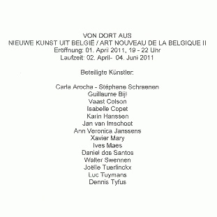 Christian Nagel K�ln: "VON DORT AUS - NIEUWE KUNST UIT BELGI� / ART NOUVEAU DE LA BELGIQUE II" - 2 Apr 2011 to 4 June 2011 Current Exhibition |