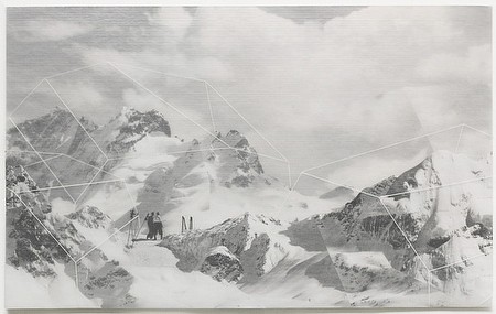 ULRIKE HEYDENREICH 04.05. - 01.06.2013 ...which, when shone on by the sun, give off a splendid sparkle like a mirror. ...die, wenn die Sonne sie bescheint, einen blendenden Glanz wie Spiegel von sich geben. aus: Gottlieb Sigmund Gruner: Die Eisgebirge des Schweizerlandes, Bern 1760 Ulrike Heydenreich verfolgt in ihren jüngsten, nun erstmals präsentierten Werken ihre Motive weiter und entwickelt sie zugleich fort: Ihr Interesse für Kartografie und das grundlegende Thema der Raum-Zeichnung bleiben virulent und erhalten neue Ausformungen. Das Erproben von unterschiedlichen Perspektiven und den Eigenschaften verschiedener Papiere, das Auffächern von kristallinen Formen und das Spiel mit Reflexen spielt in allen Werkgruppen eine wichtige Rolle. Dies belegt auch der verheißungsvolle Ausstellungstitel, den sie wählte, er entstammt einer Eisgebirgsbeschreibung in vorromantischer Zeit.1 Ulrike Heydenreichs Zeichnungen wie auch die Collagen Neuland mit schneebedeckten Berghöhen und den dortigen Wanderern wirken der Zeit seltsam enthoben. Bei allen Raum-Zeichner/innen spielt der Aspekt der Zeit – komprimierte Zeit, Vergänglichkeit und Ewigkeit – eine ganz wesentliche Rolle, 2 bei Ulrike Heydenreichs Landschaftsmotiven jedoch dergestalt, dass die Zeit stehen geblieben zu sein scheint. Die historischen Fotovorlagen, die sie nutzt, werden somit in die Gegenwart überführt und behalten zugleich ihre ehemalige Aura. Und das Motiv Gebirge ist letztlich ein zeitloser Ort: Neben dem Meer noch am ehesten „ursprünglich“, am wenigsten von Menschenhand verändert, hier sucht der Mensch nachgerade Einsamkeit, Ursprünglichkeit, Ruhe, Weite und fühlt sich noch heute klein und unscheinbar. Das Gefühl der Erhabenheit, das schon die Romantiker mit Gebirge verbanden und in ihren Bildern ausdrücken wollten, stellt sich auch heute noch am ehesten hier ein – Berggipfel scheinen dem Himmel so nah. Caspar David Friedrich etwa zeigte sich in einem Gemälde als Wanderer über dem Nebelmeer (1818): Auf dem Gipfel stehend vor dem Bergpanorama schaut er über die zeit- und grenzenlose Natur, großartig und lebensfeindlich zugleich. Doch steht er dort im Anzug und man kann sich vorstellen, dass er sogleich ein Gipfelkreuz als Zeichen der vermeintlichen „Natureroberung“ durch den Menschen setzt. Ging es den Romantikern seinerzeit neben der metaphysischen, symbolischen Aufladung auch um die Wiedererkennbarkeit der Landschaft, so spielt die konkrete Verortung in verwandten Werken des 21. Jahrhunderts keine Rolle mehr.3 In den Collagen Ulrike Heydenreichs wird die Landschaft zu einer Art Bühne, von den Staffage-Figuren betrachtet wie ein Theaterstück. Dass Landschaft letztlich immer an die Imaginationen und Assoziationen des Betrachters gekoppelt ist – denn nur so wird aus Natur überhaupt eine Landschaft –, wird in den Collagen höchstselbst anschaulich. Denn etwas stülpt sich über die Landschaft, die sie soeben entdecken und bewundern: kristalline Konstruktionen, die an eis- oder quarzartige Formen erinnern. Wie feines Gittergewebe, das wiederum mit den Naturformen korrespondiert, kann es ebenso irritieren wie sich gleichermaßen einfügen. In einigen Collagen ist es gar losgelöst vom Gebirge, schwebend in der Höhe oder den Wanderern folgend, die nach links aus dem Bild zu entschwinden scheinen. Die Künstlerin gibt mit der realistischen Landschaft, den Wanderern und der geometrisch-abstrakten Form den Collagen nicht nur inhaltlich mehrere Schichten. Die Bildbestandteile fächern sich über vier Papierlagen auf, drei davon in Transparent, die sich in ihren tiefen Rahmen auch in den Raum erstrecken. Ähnlich verhält es sich bei den Ausblicken, wenn Ulrike Heydenreich mittels der Papier-Konstruktionen dem gezeichneten Panoramablick eine architektonische Raumform beigibt. In den neuesten Arbeiten dieser Werkgruppe sind die Blätter hingegen konkav gebogen – damit hat sie nicht nur die Ausblicke mit den verwandten Panoramaringen verbunden, 4 sondern auch zu überzeugenden neuen perspektivischen Reizen überführt. In den Gebirgsstücken, einer Kleinstedition von Siebdrucken, finden sich analog zu den Ausblicken Papier-Faltungen wieder – sie sind nun jedoch nicht architektonisch-räumlich, sondern zu dreiseitigen Körpern gefaltet – ihre räumliche Tiefe erzeugen sie durch überaus scharfe Kanten. Damit bieten sie gleichfalls eine weitere räumliche Ebene zu den darauf gedruckten und titelgebenden Gebirgsstücken, die mit ihren grobgerasterten Motiven und der eisblauen Farbigkeit das benannte Erhabene auf eine wiederum andere, neue Weise ins Bild setzen. Wenn „Zeichnung als Weltentwurf“ gelten kann, was Ulrike Heydenreich in den vergangenen Jahren eindrucksvoll belegte, so dehnt sie nachgerade diese Idee in den Raum aus. Dieses Ansinnen von ihr bekommt durch die mit den Siebdrucken korrespondierenden Glasobjekte eine spannende Gestalt. Sie referieren mit den zarten silbrigen Linien auf reduzierte Quarzformen, somit bekommt dasselbe Ausgangsmaterial wie bei den Collagen und deren Ästhetik eine neue Form. Die Skulpturteile sind unterschiedlich groß und hoch an die Wand gelehnt, eine mögliche Erweiterung oder Veränderung schwingt in der beiläufig und temporär wirkenden Aufstellung mit. Die gesamte Installation ist durch eine formale Strenge und kühle Ausstrahlung gekennzeichnet mit eine minimalistischen Anmutung, der nichts Narratives anhaftet. Doch spiegeln die Glaselemente die Umgebung des Ausstellungsraumes, beziehen die sich bewegenden Betrachter mit ein und reflektieren das einfallende – und sich verändernde – Licht. Zarte Spiegelungen des Selbst, Reflektionen nicht nur im optischen Sinne sondern auch insofern, als der Betrachter der Quarzskulpturen auf sich selbst zurückgeworfen wird, machen einen wesentlichen Reiz dieser neuen – und in den realen Raum ausgreifenden – Arbeiten Ulrike Heydenreichs aus. Dr. Petra Lanfermann, 2013 1] Gottlieb Sigmund Gruner, Die Eisgebi