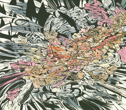 Raum1 Perry Roberts, Emilio Perez Bisher war Perry Roberts (geb. 1954 In Newcastle upon Tyne, GB) bekannt f�r seine gro�formatigen Wandmalereien, die den Zusammenhang von Malerei und Architektur in reduziert abstrakter Formensprache thematisierten. 2006 war in der Ikon Gallery, Birmingham, seine mehrteilige raumf�llende Videoprojektion �Transitions� zu sehen, in der Architektur � �berwiegend aus den Sechziger Jahren � und wechselndes Tageslicht zu einer abstrakten filmischen Komposition verschmolzen. Im Fr�hjahr 2007 zeigten wir aktuelle Bilder in der FILIALE Berlin, deren starke Farbigkeit sich schon in den monumentalen Wandmalereien 2006 im MARTA, Herford ank�ndigte. Seine neuen gro�formatigen Leinw�nde waren im Fr�hjahr 2007 erstmals in der Galerie Koraalberg, Antwerpen zu sehen. In den Neunzigern hatte Perry Roberts bereits mehrere Ausstellungen in unserer Galerie und eine umfangreiche Einzelausstellung im Abteiberg-Museum, M�nchengladbach. Emilio Perez (geboren 1972 in New York) bewegt sich in seinen abstrakten Malereien zwischen den drogeninspirierten Arbeiten eines Henri Micheaux, Freestyle � Graffiti und der Bildsprache des Manga. Er hat eine einzigartige Arbeitsweise perfektioniert. Er tr�gt Malschicht auf Malschicht auf und entfernt Bereiche, die er mit freier Hand mittels Skalpell herausschneidet wieder, um darunterliegende Farben freizulegen. Die kleinteiligen Formen verdichten sich im Bild zu spiraligen Farbwirbeln und schaffen einen Kosmos subjektiver Assoziationen auf Seiten des Betrachters. Seine erste Einzelausstellung in der Lelong Gallery, New York, die gerade zu Ende gegangen ist, fand bei Besuchern und Sammlern au�ergew�hnliche Beachtung. Raum2 Mark Kent Rough Sleeping Patterns Mark Kent Rough Sleeping Patterns und andere Arbeiten Galerie Conrads zeigt neben neuen Bildern die Installation �Rough Sleeping Patterns�, die Mark Kent f�r die von Ami Barak kuratierte Ausstellung House Trip auf dem diesj�hrigen Art Forum Berlin angefertigt hat. Wir freuen uns, dass zur Ausstellung in D�sseldorf das gleichnamige Buch Rough Sleeping Patterns, die erste gr��ere Publikation des K�nstlers, erscheint. Die Installation ist aus den Eindr�cken einer langen Fahrradreise des K�nstlers durch Norwegen entstanden. W�hrend dieser Reise �bernachtete Mark Kent �berwiegend im Freien: Rough Sleeping. Kent sagt dazu selber: � The input is my own life. During my travelling I constantly keep track of what the coordinates of my location are. When I�m back in my studio, I begin with a figurative image, which I manipulate on the computer. I use the numbers of the coordinates to change the sine waves of the image. It�s an asymmetrical system and my patterns have flaws. They have the accidental in them and they don�t quite match up.� Gro�e Muster in grauen, schwarzen, gr�nen und wei�en Farben wurden auf Tapete und Stoff gedruckt. Auf der Wand h�ngen Bilder mit �hnlichen Mustern, die jedoch farblich leicht differieren. Der Raum verliert seine feste Form und wir verlieren uns in den nie gleichen Mustern von Wand, Vorhang und Bild. Unser Auge folgt Kent�s fragmentierter Welt aus abstrakten Linien, Farben und Formen und versucht Halt zu finden, aber das Gehirn scheitert an der Komplexit�t der visuellen Eindr�cke. �berlassen wir uns den visuellen Strukturen, gleiten wir in einen meditativen Zustand, fast als w�ren wir hypnotisiert durch den von uns betretenen Raum. Mark Kent, geboren 1972 in Cork (Irland) lebt in Eindhoven (NL). Nach Beendigung des Studiums am Crawford Art College in Cork wurde er f�r das zweij�hrige Postgraduierten - Studium der Rijksakademie in Amsterdam zugelassen. In der Vergangenheit zeigte er seine Arbeiten im Museum Leeuwarden, NL, bei Ellen de Bruijne Projects, Amsterdam, Temporary Art Center, Eindhoven; Crawford Art Gallery, Cork, Temple Bar Gallery, Dublin und wird in diesem Jahr eine gro�e Installation bei Gemal Project in Genk, (BE) und im FILTER, Hamburg haben. |