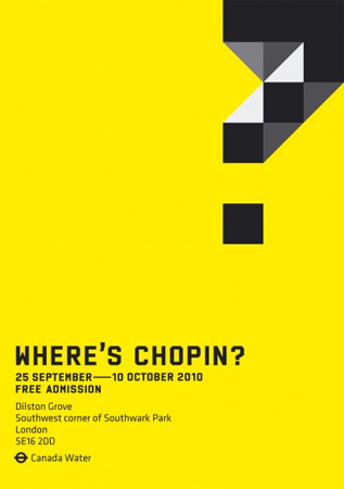 Where�s Chopin? 25 Sep - 10 Oct 2010 Concert-playing installations. Three landmark installations presenting completely new interpretations of Chopin�s music, integrating some of his most popular piano works with high technology to create powerful visual accompaniments, revealing the timeless power and appeal of Chopin�s music well beyond conventional concert-hall recitals. As one of the highlights of a year celebrating Fryderyk Chopin�s music, the Polish Cultural Institute and WRO Art Center present a fresh new take on the most renowned Polish composer, integrating his compositions into three multimedia installations. Organised jointly by the Polish Cultural Institute, the WRO Art Center in Wroc�aw and Stanford University, Where's Chopin? brings together audiovisual artists of three generations - Pawel Janicki, Jaroslaw Kapuscinski and the legendary video-art pioneer J�zef Robakowski � with innovative works that combine Chopin�s music with interactive media installations. The exhibition is curated by Piotr Krajewski. The Where�s Chopin? show will be held simultaneously in Poland and the UK, at the Warsaw Autumn Contemporary Music Festival and at Dilston Grove in Southwark Park in London. The UK opening will feature a performance by Jaroslaw Kapuscinski, the composer of one of the specially commissioned pieces. In the churchlike interior of Dilston Grove, the installations will be experienced sequentially in a 60- minute span. Visitors first enter the interactive environment of Pawel Janicki�s Mapping Chopin. Within the darkened space, white shapes are projected onto the floor by beams of light. As people move across these white shapes, specially designed software combined with a motion-detection system generates variations on digitalized scores of Chopin's pieces, based on the behavior of the audience/participants. Janicki's work utilizes Chopin's Etude in A-flat major (Op. 25 No.1), Valse Brillante in A minor (Op. 34 No. 2), Tarantella in A-flat major (Op. 43) and Nocturne in G minor (Op. 15 No. 3). Various musical parameters of the works � dynamic range, tempo, articulation � are linked with data from the motion-detection system, so that people within the installation space can, through their own activity, �play� the music, generating phrases and longer passages. The data from the motion-detection software are also mapped onto the vertical and horizontal axes of the musical score. This creates a graphic allusion to the physical space as well as to the keyboard projected into it, highlighting the sequencing of the notes in the compositions and the way they're linked to the space and to the movements of the audience/participants. Progressing through the building, visitors next encounter J�zef Robakowski's 2004 work Attention: Light! � a work that startles with its intense use of colour and light in an audiovisual manifestation of synesthesia. Attention: Light! was inspired by a film that the famous American artist and experimenter Paul Sharits made in 1981 in Robakowski's apartment in Lodz under the influence of a potent dose of Chopin's mazurkas. Sharits's tape was lost, but a few years later he sent Robakowski a sketch that served as a production plan when � after Sharits's death � Robakowski made a video version of the lost work in collaboration with Wies�aw Michalak. Robakowski describes the situation that gave rise to the original film, when Sharits, who was then on crutches, came to Poland and was staying at Robakowski's apartment: "Under the influence of a Chopin record that I'd put on full blast, [Sharits] grabbed my camera, hauled himself out on the balcony and started waving the camera around vigorously in time to the blaring mazurkas. That film was never made, because martial law was imposed and the tape was lost somewhere in a state lab where it had been left to be developed. But that performance had made a very powerful impression on us. We were very close at the time. You could say we fell in love because of Chopin and art." The new installation version of this work � Attention: Light! 2.0 is yet another incarnation of Sharits's and Robakowski's idea, created by Pawel Janicki. He has created digital algorithmic sound-generated images that are broken down into pure colors. Each note played by a Disklavier controls the multi-screen video projection, in which specific colours are assigned to particular piano sounds. Using the vast array of moods discovered in Chopin�s 58 Mazurkas, Robakowski creates an absorbing, exhilarating visual experience of some of piano�s finest literature. The installation on which the exhibition based its name is Jaroslaw Kapuscinski�s Where Is Chopin? [Gdzie jest Chopin?], an audiovisual composition for Disklavier & multichannel projection. The starting point is an original composition that Kapuscinski based on Chopin's 24 Preludes (Op. 28). A programmed MIDI-capable piano plays the pieces, and the notes activate a multichannel video projection showing the faces of rapt listeners. The images are the artist's search for traces of Chopin's music on the faces of people listening to it. To carry out this project, Kapuscinski performed a series of concerts in selected cities in countries where Chopin is hugely popular but where he personally never set foot (Tokyo, San Francisco, Wellington, Sydney, Seoul, Beijing, Istanbul, Jerusalem, Helsinki, Buenos Aires, Santiago and Mexico City). During these concerts camera operators and photographers working with Kapuscinski documented the emotional reactions of the listeners to Chopin's Preludes. The three installations were commissioned jointly by the WRO Art Center, the Warsaw Autumn Contemporary Music Festival and Stanford University for the 2010 Chopin Anniversary Year, and were co-funded by the Polish Ministry of Culture and National Heritage and the Polish Cultural Institute in London. For the UK opening of Where's Chopin? and at a private viewing of the exhibiti