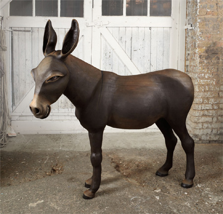Annie Whiles Beggars Belief 8 April 15 - May 2011 Private View: Friday 8 April 6 - 9 pm Watch this: / Ding-a-ling-a-ling / Ding-a-ling-a-ling-ding / Ding-a-ling-a-ling / Ding-a-ling-a-ling-ding / Do-da-do-da / I'm in heaven, I'm in heaven / I'm in heaven, when you smile� - Van Morrison, Jackie Wilson Said The work begins with the experience of an �encounter� - for example, the occasion when Whiles saw a donkey smile at her on Blackheath Common. At some point this encounter becomes associated with a Biblical event - with Balaam�s donkey, who speaks to his rider after seeing the angel of the Lord (Numbers 22.21-35). The encounter is then re-enacted, and this is then photographed, and an outline drawing made of the scene, large in scale, to allow for every detail to be recorded. This detailed drawing is then reduced in scale, before being translated into the material of the final work, at which point colour is introduced. By these means, Whiles aims to suspend the observed event: in art-historical terms, �between Surrealism and Soviet realism�, and in metaphysical terms, between the quotidian and the miraculous. So what is the nature of the encounter in Whiles� work? Martin Buber distinguished between two forms of existential relationship; the Ich-Du (I-Thou) and the Ich-Es (I-It). The I-It relation is between oneself and the idea of a thing, an object, and therefore not really a relationship at all, but a kind of monologue. The I-Thou relation is understood rather as a dialogue between two subjects; the language may be metaphorical, but the relationship is genuine, and as such, a true encounter. One example is Buber�s meeting with a tree: �I can look on it as a picture: stiff column in a shock of light, or splash of green shot with the delicate blue and silver of the background. I can perceive it as movement: flowing veins on clinging, pressing pith, suck of the roots, breathing of the leaves, ceaseless commerce with earth and air - and the obscure growth itself. I can classify it in a species and study it as a type in its structure and mode of life. I can subdue its actual presence and form so sternly that I recognize it only as an expression of law... I can dissipate it and perpetuate it in number... In all this the tree remains my object, occupies space and time, and has its nature and constitution. It can, however, also come about, if I have both will and grace, that in considering the tree I become bound up in relation to it. The tree is no longer It��� Of course, encounters with trees (or birds, or dogs, or donkeys) are not the only, nor the most important relations, but for Buber, 'every particular Thou is a glimpse through to the eternal Thou'.� I suspect that Whiles might assent to this, whilst observing that, in any relationship, the odd smile never goes amiss. [1] Buber, Martin, I and Thou, Edinburgh: T. & T. Clark, 2nd ed., 1958, pp.19-20 [2] ibid., p.99 � Mark Dean 2011 For her second solo show in the gallery, Annie Whiles will be bringing together woodcarving and embroidery. The drawing of an encounter with a donkey on Blackheath Common has lead Whiles to carve the same donkey in wood in life size form. Its head is turned towards a new audience to ask new questions. A series of hand-stitched embroideries depict figurative presences in the landscape simultaneously arrested and lost. A bird made from hair wears an embroided portrait of the artist on its breast mirroring the moment of encounter looking up into a high branch. Annie Whiles completed her MA in Fine Art at Goldsmiths College in 2000 where is now a lecturer in Art Practice. Selected exhibitions include Pile, Chapter, Cardiff, 2011; The Peckham Experiment, Camberwell Space, 2009; The Fabric of Myth, Compton Verney, 2008; Sideshow, Grundy Art Gallery, Blackpool, 2007; Metropolis Rise, New Art from London, Shanghai and Beijing, 2006. She lives and works in London. For invitations, more information and images please contact Danielle Arnaud at [email protected] NEXT: Tessa Farmer Nymphidia 20 May - 26 June 2011 Danielle Arnaud 123 Kennington Road London SE11 6SF UK t/f +44(0) 207 735 8292 Fri, Sat & Sun 2-6pm (or by appointment) www.daniellearnaud.com |