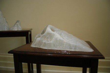 Polly Gould No More Elsewhere 17 May to 16 June 2013 Private View: Friday 17 May 6 - 9 pm Closing Event: Sunday 16 June 3pm, Performative Lecture by Polly Gould (booking essential) The works in No More Elsewhere present a series of interpretations derived from the encounter with the continent of Antarctica through the watercolours, drawings and writings of explorer, Edward Wilson (1872-1912). Wilson was one of the fated members of the Scott party who died on their return from their failed quest to be first to the South Pole. The freezing conditions of Antarctica make painting watercolours challenging, with even one's own breath coating the paper with a layer of ice. In works using pencil drawing, watercolour on paper and painting on sand-blasted glass, free-blown and moulded glass, and the light of a magic lantern, Gould explores some of the paradox of attempting to use watercolour in a sub-zero conditions and the challenge of representing this frozen continent. No More Elsewhere refers to the past of a yet to be explored Antarctica, but also refers to the future disappearance of the melting icecaps, and to a time when the evidence of their existence is preserved in the ephemera contained in climate-controlled atmosphere of air-conditioned archives. Antarctic Archive 2013 is an on-going newly made archive of copies and reproductions, hand-painted watercolour versions of Wilson’s work, found newspaper and magazine articles, postcards, and photographs, pinned on the wall in a constellation of new arrangements at each subsequent configuration. Horizon (false horizon) 2013 is comprised of hand-drawn pencil drawings of Wilson’s panoramas alongside circles of watercolour that stand for translations of Wilson’s colour annotations in his original field sketches. In the Anamorphic Landscape 2012 – 2013 works, disparate landscape views from the Wilson archive are painted onto sand-blasted glass. Their distorted shape is corrected when reflected in hand-blown mirrored glass spheres. When encountered at the optimum angle and distance, these globes present enclosed, miniature landscapes. As the viewer moves around them, they apparently fall off the edge of these reflected worlds. Miniaturisation is at play, too, in Suiseki Bergs 2013. Pieces of hand-blown moulded glass, in the form of icebergs, are placed on Edwardian mahogany tables. The name indicates the oriental reference to the Japanese appreciation of small rocks taken to stand for mountains. The huge iceberg is reformed in a glass version of domesticated ornamental dimensions. Lantern Landscape 2013, is an installation with magic lantern projector and painted wax models derived from the Wilson watercolours, set out on raked stages with the lantern light casting a shadow land in the back wall of the room. ‘What is required here is a copyist,' wrote Wilson in his pencil notes for a lecture on sketching in Antarctica meant for the entertainment of his fellow expedition party in the long dark winter nights of 1911. He felt a responsibility to inform audiences back home with accurate impressions of an environment that they would be unlikely ever to experience first hand. His lecture on sketching for the men in the hut was a mirror image of the educational tours of Edwardian drawing rooms and lecture theatres that Wilson undertook on return from the Discovery Expedition of 1901-04. For the closing event on 16th June 3pm, Polly Gould presents a performance lecture, referring to Wilson’s notes on sketching and to the documentary photographs of a magic lantern show from the 1911 Antarctic expedition, to further consider the spectacle of this contested territory which for most of us exists only as images. Polly Gould is an artist and writer based in London. In 2012, as part of Eggebert-and-Gould, she curated the show of international artists and associated publication titled TOPOPHOBIA, Fear of Place in Contemporary Art which toured to Danielle Arnaud, London, Bluecoat Liverpool and Spacex, Exeter. She is currently an AHRC funded doctoral candidate at The Bartlett School of Architecture, University College London. For more information and images please contact Danielle Arnaud at [email protected] NEXT: Helen Maurer 21 June - 14 July 2013 Danielle Arnaud 123 Kennington Road London SE11 6SF UK t/f +44(0) 207 735 8292 Fri, Sat & Sun 2-6pm (or by appointment) |
