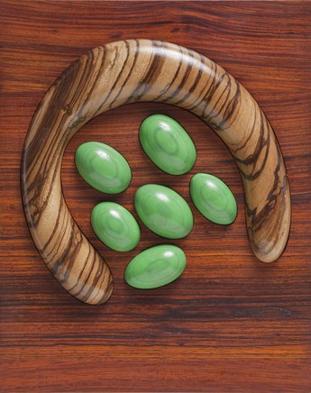 rosewood, zebrawood, varnish, paint 14.5 x 11.5 x 2 inches, (36.8 x 29.2 x 5.1 cm) |