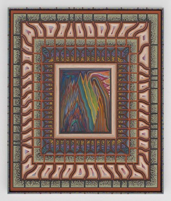 Zach Harris Echo Parked in a No Vex Cave June 29 – August 17, 2013 Opening reception: Saturday, June 29, 6:00–9:00pm David Kordansky Gallery is very pleased to announce Echo Parked in a No Vex Cave, an exhibition of new paintings by Zach Harris. The show will run from June 29 until August 17, 2013; an opening reception will be held on Saturday, June 29, from 6:00 until 9:00pm. This is the artist's first exhibition at the gallery. Zach Harris makes objects that fall generally under the rubric of painting but that defy any attempt at easy categorization. Neither wholly representation nor wholly abstract, each work is resolved through a combination of technique, craft, and honing of vision. Furthermore, Harris pursues an idiosyncratic and highly personal vocabulary that paradoxically allows him to engage with an array of sources drawn from numerous cultural and natural contexts. In art historical terms, these include predecessors as diverse as the holy architectural and geometrical visions of the pre-Renaissance Sienese; the optical complexity and patterning conjured by Tibetan mandala-makers; and the interior/exterior vistas and landscapes of Americans like Charles Burchfield and Forrest Bess. In some cases these traditions reflect alternatives to the mainstream or deviations from the majority of contemporary painting practice. More importantly, however, they all emphasize that form is not merely an abstract visual language, but rather a connection between the physical world and the otherworldly realms that surround it and course through its center. Perhaps for this reason, viewers new to Harris' paintings are often most immediately struck by the intricacy of their construction. Frames, which are an integral part of each composition, are carved, built, routed and painted, and are sculptural works in and of themselves. The paintings at their centers, meanwhile, are worked with a level of detail, representation and spatial illusion that only reveals its full extent after long periods of viewing. In Harris' case, physicality is a reflection of time: the physical frame functions as a way to prolong and intensify the viewing experience, creating puzzling shifts in consciousness as the eye is hypnotically coaxed toward a singular source of focus. In this sense too his process must be described as a traditional one, not because of its historicity, but because it eschews the rapid glance in favor of meditative, fully embodied looking. Several of the paintings in Echo Parked in a No Vex Cave are the artist's largest to date. The increased scale allows Harris to further extend and define the peripheral field in order to engage the viewer's body as well as the eye. It also provides additional potential for experimentation with both 2-D and 3-D forms. Broad painterly gestures bring attention to flat surfaces while simultaneously alluding to deeper illusionistic spaces and calibrated color fields. The intimacy of the relationship between eye, hand, and object that is so condensed in the smaller works therefore expands to suggest resonances between the painting and the entire body. That the level of detail remains constant regardless of scale is only further testament to Harris' commitment to developing entire worlds of hue, form, and image; indeed, the paintings are like ecosystems that evolve according to their own laws of natural selection. Distinctions between center and periphery are therefore revealed to be no more than distinctions of perspective. In some works the figure (i.e. the painting) and its surrounding environment (the frame) enter into symbiotic concert. In others, like Belvedere Torso/Finger Scales, it is the figure that defines the overall experience of seeing, relegating ideas of containment to the perceptual edge. But it is also important to note those instances in which apparent differences between two phases (frame/painting, image/sculpture, landscape/abstraction) of the same painting are resolved by a third, namely the conscious and unconscious energies of the observer. It is this third phase in which the ecstatic brand of formalism that unites diverse artifacts of all kinds, from all phases of history and positions inside of and outside of the canon, finds its purest expression: a shared space in which artist and viewer perform analogous––if not identical––roles as instigators of order and enlightened witnesses of chaos. Zach Harris (b. 1976, Santa Rosa, CA) was included in Made in L.A. 2012 at the Hammer Museum, Los Angeles. His work has been featured and reviewed in Artforum, The New York Times, Modern Painters, and is in the permanent collections of the Hammer Museum; the Princeton University Art Museum, Princeton, NJ; and the Santa Barbara Museum of Art, Santa Barbara, CA. Harris lives and works in Los Angeles. GRAPEVINE~ Magdalena Suarez Frimkess, Michael Frimkess, John Mason, Ron Nagle, Peter Shire curated by Ricky Swallow July 13 – August 17, 2013 Opening reception: Saturday, July 13, 6:00–9:00pm GRAPEVINE~ was conceived as way of exhibiting a group of artists who have all worked in clay, in California, for more than 40 years. Throughout that time these artists have always sought to contradict the limitations of the medium in terms of its craft parameters. It might sound obvious, but there is something about this work brewing on the West Coast. I can't imagine it surfacing anywhere else with its strangeness paired with such dedication to finish and quality. The show is intended to reflect a fan's perspective rather than an exhaustive attempt to chronicle the history of the ceramics movement in California, as the Pacific Standard Time exhibitions recently performed this function perfectly. It's revealing to consider the works on view in light of the current state of ceramics in the contemporary art world. Though clay is drawing new attention among younger artists, these "visitors," as one ceramics elder described them to me, seem to be focused on bringing o