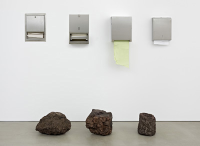 Gabriel Kuri carbon index compost copy April 29 - June 1, 2011 In his second solo exhibiton at Esther Schipper, Gabriel Kuri will show new sculptural works combining white marble slabs and bank notes, hand towel dispensers and volcanic rocks, a photocopier wrapped in insulating roofing roll and a light box. Our New Address and Contact Details Esther Schipper Sch�neberger Ufer 65 D-10785 Berlin Tel: +49 (0)30 37 44 33 133 Fax: +49 (0)30 37 44 33 134 Office hours: Monday to Friday, 10am - 6 pm The gallery will be open from March 15, 2011 and then weekly, Tuesday to Saturday, 11am - 6 pm |