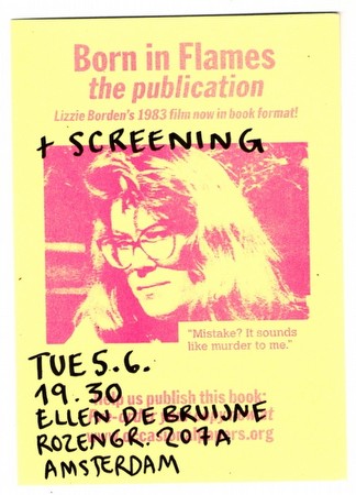 Born in Flames – Resistance These coming weeks Ellen de Bruijne Projects will present numerous events around the theme of resistance, resulting in a vivid exhibition that will grow by the day. Starting point is 1983 cult movie Born in Flames by Lizzie Borden, a documentary style film dealing with problems of all kinds. In a future United States socialist democracy sexism, racism and classism are daily routine. Diverse groups of women feel urged to gather and revolt against not only the government, but cultural society as a whole to stop matters for once and for all. The event based exhibition brings various artists together, from in and outside the gallery, connected by their shared fascination for resistance in every imaginable way. Ellen de Bruijne Projects will present lectures, performances and screenings. Updates on events, dates and times will come soon! On Tuesday the 5th of June we will kick off with the screening of Born in Flames accompanied by a lecture by Kaisa Lassinaro, whose new book Born in Flames will be launched in the gallery at that evening. You are all welcome at 19.30 at Ellen de Bruijne Projects. Born in Flames – Kaisa Lassinaro Born in Flames, the publication, is an illustrated transcript of Lizzie Borden’s 1983 film ‘Born in Flames’, edited and designed by Kaisa Lassinaro. It includes an interview with Borden conducted in L.A. by Lassinaro, as well as the lyrics of Undercover Nation by The Bloods and Born in Flames by Red Crayola, kindly supplied by Adele Bertei and Mayo Thompson. Dolores Simone Forti – News Animations Ellen de Bruijne Projects proudly presents the work of Los Angeles based artist Simone Forti. By many regarded as one of the key figures in postmodern dance, Forti prefers to be referred to as a movement artist. By improvising she explores pure movement and its relation to the mind, in her latest work enriched by language as one of her central interests. Her work links linguistics to movement by translating the word into gesture and speech into choreography. According to Simone Forti improvisation can never be purely natural and spontaneous as it will always be influenced by the dancers’ personal style or desire to express. By using only movements of everyday life, she aims to objectify improvisation. These movements are strengthened by the ephemeral character of her choreographies due to their truly improvisational core. In News Animations the news becomes the choreographer, determining Forti’s movements and speech. This seemingly infinite series of performances started as an attempt to fully comprehend the news through improvisations. Moving and speaking became a method of inquiry and social commentary, implementing all words that come to mind. These words arise from questions, feelings and speculations about the world brought to us by the news. Also incorporated in Forti’s drawings, the artist has found a way to practice improvisation in the two-dimensional as well. Thought becomes movement becomes line becomes word. Simone Forti (IT, 1935) is a dancer/choreographer /writer. After her studies and apprenticeship with Anna Halprin, she studied composition at Merce Cunningham Studios. Here she started working with choreographers like Trisha Brown, Yvonne Rainer, and Steve Paxton. Forti went on to be a pivotal figure in the Judson Dance Theater community. Over the years her work has evolved from her early Dance Constructions, through her animal movement studies and News Animations, an improvisational dance narrative form wherein movement and language spontaneously weave together. In 2005 Forti received the Guggenheim Fellowship and currently she’s teaching improvisation at UCLA. Throughout the years, writing has been part of Forti’s process. Among her writings are: Handbook in Motion (1974) published by The Press of the Nova Scotia College of Art and Design; Oh,Tongue (2003) and Unbuttoned Sleeves (2006) both published by Beyond Baroque Books. |