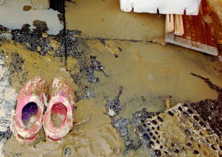 Foxy Production presents Year of The Pig Sty, Hany Armanious� inaugural New York exhibition. In Armanious� provocative work, perverse actions take place upon unexpected materials, resulting in enigmatic objects, scenes and associations. Like a pranksterish alchemist, he transforms the process of casting into a witty and symbolic practice. His detours and digressions through the fictional systems he constructs, paradoxically foster both confusion and engagement. Year of The Pig Sty is an installation with an internal logic that seems more elusive the longer the work is contemplated. The viewer is greeted with a shocking vista of filth and disarray: on closer inspection, the work resembles a wayward workshop, where strange organic objects are crafted from mud. A desperate struggle seems to have taken place to keep an outmoded artisanal practice going. The installation is a site where intense and delirious actions have taken place, where motives remain mysterious, and odd linguistic connections are forged. Recalling Beuys� interplays between textures and history, Year of The Pig Sty inventively interweaves materials and allegory; but unlike Beuys� work, the associations here are inconclusive, provisional, and likely to be misleading. How various parts of the installation relate to one another can be alternately elementary or elusive. Crocs, the lightweight therapeutic footwear made through injection casting, figure centrally in the work: in one area, a chaotic collection of Crocs, shoe molds, molded bacon, shoeboxes, socks, among other elements, poetically and humorously conflates therapy, consumerism, and failure. An oversized Styrofoam box, hand-carved and containing mud and oversized truffles made from soil and resin, is surrounded by muddy Croc footprints. A trough constructed from form-ply is filled with mud, as if waiting for pigs to return. Resembling an alien pod, a white Styrofoam box is fused with the sole of a Birkenstock and cast in resin. A doormat with hollows is used to mold circular bricks through the action of the muddy Crocs being wiped on it. The bricks are dried under a snooker table light with hydroponic grow lamps that resembles a descending spacecraft. The same bricks are braced together to form pottery pool cues; apparently the end-product of this wayward production line. The installation represents perhaps an artist�s studio in throes of fervid activity. Messy, unformed, embryonic objects are in the process of objecthood, as if we are witnesses to the primal scene of creativity. Or has the habitat of the artist been terminally disturbed, the scene contaminated, the project abandoned? HANY ARMANIOUS (Cairo, Egypt, 1962) lives and works in Sydney. He holds a BA in Visual Arts, City Art Institute, Sydney, Australia. Selected exhibitions include the Gallery of Wellington, Wellington (2007)(solo); Institute of Modern Art, Brisbane (2006)(solo); Monash University Museum of Art, Melbourne (2006); Busan Biennale, Busan (2006); Ocular Lab Inc., Melbourne, (2005)(solo); National Gallery of Australia, Canberra (2005); Auckland Art Gallery, Auckland, (2004)(solo); Ian Potter Museum, Melbourne, (2002)(solo); UCLA Hammer Museum, Los Angeles (2001) (solo). |