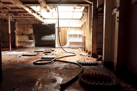 The Front Room Presents: Stephen Mallon “The Reefing of USS Radford” May 18–June 17th Reception, Fri. May 18th, 7-9pm Hours: Fri-Sun 1-6 The Front Room Gallery is Proud to present “The Reefing of USS Radford.” Stephen Mallon’s 3rd solo exhibition at The Front Room, this body of work is a continuation of his ongoing series “American Reclamation,”which chronicles and examines recycling processes in the U.S. This series holds optimism in the innovation of salvaging techniques, showing the possible gains that can be made as industrial waste is revivified. In the summer of 2010, American Marine Group (AMG) assumed responsibility of sinking the longest vessel ever reefed in the the Atlantic Ocean to date. 135 feet deep, and 28.5 nautical miles southeast of Cape May. 563-feet in length, the USS Arthur W. Radford has nobly served her country for over 26 years as a US. Navy Spruance destroyer. Her impressive military background includes 10 deployments ranging from Venezuela, Panama, Argentina, Brazil, Senegal, Oman, Bahrain, the Azores, Nova Scotia, Italy and Turkey. Campaigns from Persian Gulf War, peace keeping operations off Lebanese coast, and finally retiring from her latest tour to battle in Operation Enduring Freedom makes her as decorated a hero as any Naval Admiral. This ship, once home to over 340 sailors at a single time, was given it’s last mission; to retire and become an underwater eco system to house algae, fish, anglers, and other under water life alike. Creating an underwater community not only for fish, but for divers as well. Stephen Mallon’s new series charts the final stages of this glorious vessel’s life and the destructive beauty of preparing it for reefing. |