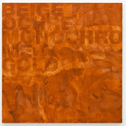 Heimo Zobernig 21 January - 3 March, 2012 Two spaces for an exhibition, one expects for an intervention playing on both spaces simultaneously, even a re-duplication. Heimo Zobernig is usually keen on working on the question of the double: the double of the artist, the double of the space, or the double of the piece whether it is with mirrors, in the video Heimo Zobernig explains to his double how to make a performance , during the re-activation of a symposium, or even by showing his catalogues along with their references…This time at the Chantal Crousel Gallery, the doubling is not so evident. In appearance, one space, La Douane is dedicated to video works and sculptures, some dating from the 1980’s while a recent series of paintings is on display at the rue Charlot space. What could be said of paintings where words seem to surface from a haze? The paintings are made with adhesive letters placed on the canvas and covered by a layer of white paint. When the adhesive letters are removed, a light relief appears between the letters and the background and persists when other layers of paint are applied with a palette knife. Sometimes part of the background is painted directly in brown or blue onto the canvas, which allows for a darker effect. Depending on the configurations, the words then seem to emerge from or sink into a sort of haze. This produces a phantom-like effect in which the pure and minimal form is no longer the privilege of the language. Prior works of Zobernig’s, as in the “REAL” series, billboards “AMERIKANER”, “dCONSTRUCTIVISM” or the panel “SKULPTUR PROJEKTE MÜNSTER” address such issues. Yet the letters now appear in tonal withdrawal or in tonal advance, and form words succeeding one another, sometimes with repetitions or clippings. What could we think? Lists interrupted of artistic genres, as if Zobernig was trying to convince or remind himself what it is about (PAINTING/PAINTING/SCULPTURE)? Bizarre play on words (PAIN/TING/PAINTING)? A form of irony towards conceptual artists, guardians of the rules of language, in the way of Joseph Kosuth. (BEIGE/OCHRE/MONOCHRO/ME/GOLD)? Or associations that might make one smile (CONSTRUCTION/CHARM)? These are only speculations because “the text is not really on the visible surface,” says Zobernig. “These are paintings – colour and form – the words are like watermarks on the canvas. A phenomenon.” On some of these paintings appear one or more red lines, which interfere with the hazy backgrounds. Are these lines the contours of forms reminiscent of art history? “Sometimes I know, sometimes I don’t know,” explains Zobernig, referring in that regard to an artistic unconscious by way of the young Ruskin and his obsession with motives, as described by Rosalind Krauss. It is true that recently, rather surprisingly, Zobernig started introducing curved lines and dots in his series of paintings inspired by research on Piet Mondrian and Ian Burn, even though he hasn’t ceased exploring the questions left open by geometrical abstraction. The curved lines re-introduce here a subjective dimension into a field – geometric abstraction – that is focused on objectivity. “The free line is the subjective form but also the way to search for the good form. The grid stays objective,” Zobernig says. At the same time, the introduction of anthropomorphic figures in the videos and in the sculptures, also correspond to a form of subjectivity. For example, a video showing him engaged in a fight with vaguely human coloured shapes in chroma key colors – red, blue, and green – along with two sculptures from the series of “lamps – shelves – mannequins” are presented in the space of La Douane. The Lexikon der Kunst 1992 consisting of a glossary of lists of words composed with Ferdinand Schmatz, had provided Zobernig with a system, which allowed (in conjunction with the graphic designers from Experimental Jetset) for the creation of the posters and the cover for the catalogue of his exhibition at the CAPC in 2009. Much in the same way, the inventory of terms permits Zobernig to work the shape and the material of the words on the surface of the canvas. He thus joins a debate on the objectivization of poetry, undertaken by Mallarmé and Broodthaers, and that can be traced in the recent works of Josef Strau, Clément Rodzielski, Michael Krebber or Bernadette Corporation. Catherine Chevalier Heimo Zobernig Jan. 21, 2012 - March 3, 2012 Deux lieux pour une exposition. On attend là une intervention qui se joue sur les deux espaces à la fois, voire même un redoublement. Car Heimo Zobernig aime habituellement travailler sur la question du double : le double de l’artiste, le double de l’espace, ou le double de l’oeuvre – que ce soit avec des miroirs, dans la vidéo "Heimo Zobernig explique à son double comment on fait une performance", lors de la réactivation de symposium, ou encore en montrant ses catalogues et leurs références... Cette fois à la galerie Chantal Crousel, le redoublement n’a pas lieu de manière évidente. En apparence, un lieu est dédié à des sculptures dont certaines datent des années 1980 et à des vidéos, l’espace de la Douane et l’autre, la galerie de la rue Charlot, est réservé à une série de peintures récentes Que dire des peintures d’où semblent émerger des mots d’un épais brouillard ? Elles sont réalisées à l’aide de lettrages adhésifs placés sur la toile et recouverts d’une couche de peinture blanche. Lorsque les adhésifs sont enlevés apparaît ainsi un léger relief entre les lettres et le fond, qui persiste lorsqu’on ajoute d’autres couches de peinture à l’aide d’un couteau-palette. Parfois, une partie du fond est peinte directement en brun ou bleu sur la toile ce qui donne un effet plus foncé. Selon les configurations, les mots semblent alors émerger d’un brouillard ou s’y enfoncer. L’effet est phantomatique, la forme pure et