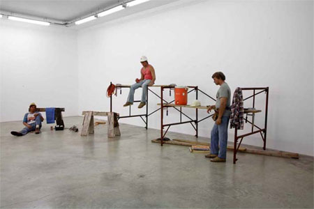 Duane HANSON "Illusions Perdues" 76 rue de Turenne : 23 mai - 11 juillet 2009 "People, workers, the elderly, all these people I see with sympathy and affection. These are the people who have fought the battle of life and who now and then show the hard work and the frustration... It�s all about human activity, it�s truth, and we all get there." This is how Duane Hanson, leading artist of the "Hyperrealist" Movement, qualifies his work. In the 60s, he tackled timely social subjects in a brutally realist manner. These works elevated social and political issues to an iconic level. Shortly thereafter, in 1970, Hanson evolved both in terms of his style and his subject matter. He depicts the everyday people he encountered. People that nobody notices, people at a loose and desperate. He represents the human condition and pursues the fragility and distress. He treats universal themes, like poverty, bad treatment, racism, homeless or loneliness. Duane Hanson created lifesize characters in his studio. He casts them directly from his models. He prefers to use fiberglass and resin, which allow him to reproduce, often in a little flattering way, slight details and sharpness of the human body. He gives life to his characters with a new credibility. He sometimes manages to create the illusion of the reality. By representing the "American Way of Life", Duane Hanson transports scenes of the commonplaces to museums, to immortalize them. "Le peuple, les ouvriers, les personnes �g�es, tous ces gens que je vois avec de la sympathie et de l'affection. Ce sont ces gens qui se sont battus avec les affres de la vie et qui laissent appara�tre la frustration et le dur labeur. Il s'agit de l'activit� humaine, la v�rit� et nous en arrivons tous l�." Voici comment Duane Hanson, artiste phare du mouvement "hyperr�aliste", qualifie son travail. D�s les ann�es 60, il aborde des sujets sociaux de mani�re brutalement r�aliste. Ces oeuvres �l�vent les probl�matiques politiques et sociales � un niveau iconique. En 1970, il �volue � la fois dans son style et dans le choix de ses personnages. Il repr�sente des personnages de la vie de tous les jours: des personnages que personne ne remarque, d�soeuvr�s et d�sesp�r�s. Il d�peint la condition humaine et traque la fragilit� et la d�tresse. Il traite des th�matiques universelles comme la pauvret�, la maltraitance, le racisme, les sans-domicile-fixe ou la solitude. Duane Hanson cr�e ses personnages grandeur nature dans son atelier en effectuant directement des moulages sur ses mod�les vivants. Il privil�gie la fibre de verre et la r�sine qui permet de reproduire, souvent de mani�re peu flatteuse, les moindres d�tails et finesses du corps humain. Il donne vie � ses personnages avec une cr�dibilit� nouvelle. Il r�ussit parfois � cr�er l'illusion de la r�alit�. En repr�sentant l"American Way of Life", Duane Hanson transporte des sc�nes de la vie quotidienne banale ou provocante dans des institutions et des mus�es, afin de les immortaliser. Duane Hanson was born in 1925 and passed away in 1996 (USA). Selected Solo Exhibitions: Kunsthalle Krems, Austria; Arken Museum of Modern Art, Copenhagen, Denmark; Helsinki City Art Museum, Finland; Unesco Weltkulturerbe V�lklinger H�tte, V�lklingen, Germany; The Art Gallery of Windsor, Canada; The Columbus Museum of Art, Columbus, USA; Joslyn Art Museum, Omaha, USA; Padiglione d'Arte Contemporanea, Milan, Italy; Kunsthaus Z�rich, Switzerland; Schirn Kunsthalle, Francfort, Germany; Ballroom, Royal Festival Hall, London, UK; Whitney Museum of American Art, New York, USA; Daimaru Museum of Art, Tokyo, Japan; Kunstverein, Hambourg, Germany. Mariko MORI "White Hole" 10 impasse Saint Claude : 23 mai - 23 juillet 2009 "Enveloped by the luminous gas, the galactic center emits tremendous light. This light in reality signifies the death of stars that are pulled and torn apart by the gravity of black holes. Just as living beings face their certain deaths, the universe will eventually come to an end in its life cycle. Contemporary physics hypothesizes that at the end of the universe, all the stars will be swallowed by black holes and all that exist will be dissolved, with only photons, neutrinos, and electrons left behind forlornly floating in a vast, overexpanded space. Does this mean that after the demise of the vast universe, there will only be an infinite space, the world of nothingness representing the end? Is this death? I imagine that after stars are fed on by black holes, their metaphysical beings would be regenerated, reborn, and continue to live in a different dimension. While their physical energies would be absorbed by black holes, with their physical bodies thus lost, their souls would be transferred to white holes through wormholes which form the gates to another dimension as time-space portals. Death is not the end, but a new beginning. It leads to rebirth. (...) If the dramas of death and rebirth, as well as new birth, unfold across many parallel dimensions, there exists an eternal time and space that has no beginning and no end. My work Black Hole/White Hole is conceived as a pair linked by a conceptual wormhole. I hope this work serves as a simulacrum of death and rebirth, prompting us to rethink the multidimensional universe that defies our imagination." Mariko Mori "Envelopp� dans un gaz lumineux, le centre de notre galaxie �met une intense lumi�re. Celle-ci correspond en r�alit� � la mort des �toiles qui sont d�chir�es et d�truites par l'attraction gravitationnelle des trous noirs. De la m�me facon que les �tres vivants font face � leur fin in�luctable, l'univers finira son cycle de vie. La physique contemporaine formule l'hypoth�se qu'� la mort de l'univers, toutes les �toiles seront litt�ralement aval�es par les trous noirs et que toute chose existante disparaitra, laissant photons, neutrinos et 