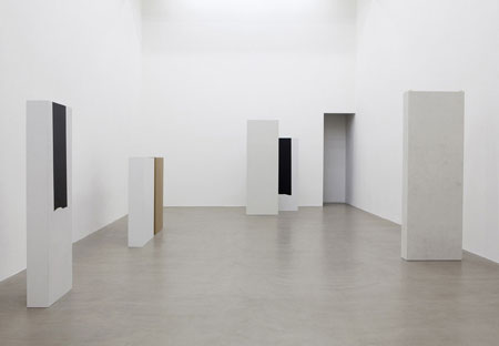 GALERIE MEYER KAINER: ANITA LEISZ BOLTENSTERN.ROOM: NADJA ATHANASSOWA The Emerging Artist Series by Will Benedict Verena Dengler Ed Ruscha Sara Deraedt Frank Stella Nadja Athanassowa Ronald Bladen OPENINGS: FRI, SEPTEMBER 17, 7 PM DURATION OF THE EXHIBITIONS: 18. 9. - 06. 11. 2010 Anita Leisz Er�ffnung / Opening: 17. 9. 2010, 7pm Ausstellungsdauer / Duration: 18. 9. � 6. 11. 2010 For this exhibition Anita Leisz has continued to build upon a series of works which investigate the construction of basic forms using readily available industrial grade material. For the past several years Leisz has worked towards producing simultaneously reductive and expressive forms which through their extreme simplicity accentuate details that offer the viewer an opportunity to see the works as both general and specific. Two seperate methods of construction are employed in the exhibition one requires a wooden skeleton upon which Leisz affixes fiberboard the other is made of white pressboard. While in the past all seams, joints, or breaks in the material were practical necessities dependant on the construction of the interior skeleton these new series of works exaggerate their construction turning the signs of their stability into cartoons. Simple white pressboard structures are now emblazoned with oversized black tape. The same white pressboard then reverses its role and becomes the interior skeleton upon which a fragile material such as cardboard is given stability. In a concrete sense the works are made up of the minute details created by chance and repetition which give a sidewalk its patina or a sofa the particular contours of its owner. The failure of a metaphorical language to descibe the works of Anita Leisz are helpful in understanding the basic idea that the works are generated by an obsessive atmosphere of precision which find their correspondance in the general confusion and frailty of the human body and in the specific power we give the objects we create and employ for our bodies and the language which our bodies utter to explain the need for those objects. In an allegorical sense the exhibition could seem to be organized into singles, couples and families, some of whom have divorced, remarried and forged bonds based on new found similarities. Or in a seperate example we may have four children who have left home to create their own lives but who are never-the-less related to one another regardless of their distances. But the exhibition is not really a family therapy clinic. (Will Benedict) Nadja Athanassowa The Emerging Artist Series by Will Benedict Er�ffnung / Opening:17. 9. 2010, 7pm Ausstellungsdauer / Duration: 18. 9. � 6. 11. 2010 Der K�nstler und Kurator Will Benedict verbindet die Arbeiten einer j�ngeren K�nstlergeneration am Beispiel dreier K�nstlerinnen Verena Dengler (geb. 1981), Sara Deraedt (geb. 1984) und Nadja Athanassowa (geb. 1982), mit Kunstwerken von Ed Ruscha, Frank Stella oder Ronald Bladen. PRESSETEXT / PRESS RELEASE Nadja Athanassowa's work takes the issue of work itself as its starting point and how our selves are built in relation to those who employ us or act as our beneficiaries. From March 2005 till October 2009 she has collected and exhibited the free journal AK F�R SIE (Arbeiter Kammer) a magazine dedicated to employment issues. Rather than take an ideological position Athanassowa attempts to present the material fact of the journal's reality by demanding that it be known that she is willing to store what is normally discarded after use. For the past couple of years Athanassowa has transformed her apartment into her work by methodically collecting and throwing her things away. At one point she found her house completely empty and instead of refilling it built up a second level to create even more floor space because she found her 3 meter ceilings to be wasteful. When I visited Athanassowa last, her walls where covered in rugs upon which she had attached advertisements for credit card offers and newspaper clippings which she had carefully folded into three dimensional forms. In the middle of the kitchen floor she was keeping the coal ash from her furnace in clear plastic bags. In an exhibition at WUK Kunsthalle she used these bags simultaneously as pedestals for her paper forms; and as what they were, bags of ash. For this exhibition Athanassowa removed and sold her furnace and used the material which functioned as the base as the key element. The furnace which is not in the exhibition was sold through Willhaben.at its value assured by its functionality unlike the base or pedestal, made of fire clay, which lost its function with the removal of the furnace. By exhibiting these left over pieces of fire clay and painting some of them in the style of an inverse frottage Athanassowa has reinscribed a value onto these chunks of debris which stress their conflicted status as both nothing and something. The other elements in the exhibition have taken a similar route towards their commodification. The pink painting was in its previous incarnation an advertisement for Yves Saint Laurent's Opium which had been transformed into a pinboard by the employees of a cosmetic store for their shop window. Twice removed from its original function the painting has travelled the spectrum of aesthetic use from advertisement to functional background display and finally to the suspicious realm of conceptual painting. Athanassowa's work struggles to address the forms that immateriality must take to be read and to always reiterate the labor involved in making this legible. (Will Benedict) |