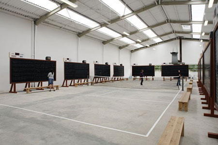 Opening night Saturday 27th June at Le Moulin, 6pm to midnight: o At 6pm: exhibition visit and cocktail o From 9pm to midnight: rustic banquet and Dj set beside the river Ilya & Emilia Kabakov, The Tennis Game 27th June � 4th October 2009 Ilya Kabakov (born in Dniepropetrovsk in 1933, Ukraine), worked in the Soviet Union as a children�s book illustrator until 1988. This context did not allow him to work as a �free� artist. He left the Soviet Union, first of all staying in Germany and then moved to New York. Emilia Kabakov (born in Dniepropetrovsk in 1945) studied music then experienced being a curator and gallery owner in New York from 1975. She has worked with Ilya Kabakov since 1989. They both live and work on Long Island (United States). As Kabakov himself defines, their works of art are part of a�Total Installation�, which signifies putting art and life in contact. His works are as much progressive, as they are romantic, and invite the spectator to concentrate on their own life, on the possibilities, the problems and the solutions with regard to their personal reality. The main work of art presented at Galleria Continua / Le Moulin is Tennis Game, A conversation between Ilya Kabakov and Boris Groys, which re-stages the medieval custom of a philosophical argument, a type of intellectual tournament between two rivals. With a discussion of this kind, a preliminary subject was established and discussed by the two partners. The two rivals belonged to sides with different traditions and the joust was rich with abrupt movements. Here, a tennis court is surrounded by fourteen black paintings unwinding the thread of a conversation between the artist and Boris Groys: the sports game gives way to the dialectic and the sports ground becomes the scene of a re-transcribed verbal joust. The match was played by Ilya Kabakov and Boris Groys. The spectators can watch past action on television screens. True, the players don�t have the same level as Boris Becker or Marat Safin, but the principal after all, is to love the game. At the same time, the spectators can contemplate the result of another game, written on the black painting. The dialogues between the philosopher Boris Groys and the artist Ilya Kabakov are presented like five rounds of a tennis match in which a question is served and then followed by a return shot. Ilya & Emilia Kabakov�s work has been exhibited in many museums like the Museum of Modern Art (New York), the Centre Pompido (Paris), the Hirshhorn Museum (Washington DC), the Stedelijk Museum (Amsterdam), at the Documenta IX, at the Whitney Biennial 1997, at the State Hermitage Museum (St. Petersburg) and in several Venice Biennials. In 1993 for example, they represented Russia at the 45th Venice Biennial with their installation The Red Pavilion. In 2008, a large retrospective: Alternative History of Art and Other Projects � and first exhibition in Russia since leaving at the end of the 1980�s � took place in four exhibition spaces in Moscow (State Pushkin Museum of Fine Arts, Center for Contemporary Culture Garage, Moscow, Contemporary Art Center, Winzavod, M&J; Guelman Gallery). The Kabakov�s works of art feature in many public collections across Europe. They have also won a large number of honorary prizes, like the Oscar Kokoschka Preis (Vienna) in 2002, and they were made Chevaliers des Arts et des Lettres in Paris, in 1995. Kimsooja, Mumbai-A Laundry Field June 27 � October 4 2009 The artist Kimsooja (Born 1957, Taegu, Korea) acts as a visual and spiritual mediator through a metaphor for life which viewers are invited to contemplate. Since the early �80s, Kimsooja began to include colourful used and popular fabrics in her work. Her fascination with textiles specifically began in 1983. It was a very precise moment in her life, when she was sewing a Korean bedspread with her mother. At that time, she was questioning the concept of �painting�s surface dimension�. When she first placed a needle into the structure of a fabric, she felt thrilled and joyful, as if a ray of immeasurable energy penetrated through her fingers and into her whole body, reaching to the needlepoint where it met the surface of the fabric. Since this very particular experience, Yin and Yang have become life's essential components for Kimsooja, and have evolved on a number of levels in her art. The work �Mumbai: A Laundry Field�, showing at Galleria Continua, Beijing, in a 4 channel video format, evolved from the series "A Needle Woman" (1999-2001 and 2005). The series was filmed in cities and other locations around the world. The artist, in a featureless outfit, has her back to the camera, almost like a silhouette. The central figure is an unknown and common presence, an "everywoman�, constantly portrayed as a fixed point in the flow of the passing crowds, or lying still while clouds pass overhead. In this video series, Kimsooja�s body is always an anonymous presence moving into a deep phase of meditation, immersing in contemplative scenarios, breaking through the world�s surface and deep into its soul, "like a needle in a haystack". The eye of the camera corresponds to that of the artist, standing apart, watching from a detached perspective. It is as if in a pure act of concentration the world vision would appear clearer and undisturbed through the narrow needle�s �eye�. Jorge Macchi, Diario Intimo June 27 � October 4 2009 The artist Jorge Macchi was born in 1963 in Buenos Aires, where he lives and works. He plays an important role amongst the generation of Argentinian artists who emerged in the 1990�s. In 1993, he moved to Paris, the start of a five year period during which he travelled all over Europe, participating in many residencies in Rotterdam, Amsterdam and London� In 1998, Jorge Macchi returned to Buenos Aires. In 2005 he displayed his work at the Venice Biennial, representing Argentina. His work was exhibited notably at the Havana, Sao Paulo and 