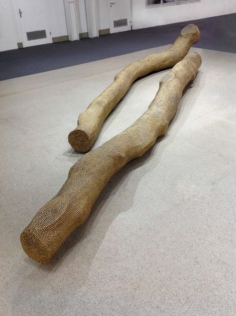 bois de h�tre et clous tapissiers en laiton (beech wood and upholstery brass nails) 70 x 520 x 40 cm & 40 x 520 x 40 cm (271/2 x 2043/4 x 153/4 & 15 3/4 x 2043/4 x 153/4 in |