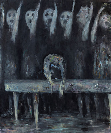 The Art of Watching Birds Val�rie Favre February 26 � April 21, 2011 Private View on Friday, February 25, 7 � 9 pm Let's Ask the Kobolds The phenomenal painting cycles on which Val�rie Favre has been working for over ten years are borne by a provoking realm which, to signify the entire "potlatch" as a conglomerate promising freedom, could well carry the title "societal mirror of spectacle." Favre's productivity is a rebellious aggressiveness, a radical reasoning between that very spectacle society that refrains from declaring Guy Debord's posthumous popularity either a success or failure and that lonely but ingenious process of self-conveyance that quickly volatilized every solidified image of the "persona" (still potent today) of the era of New Objectivity in Berlin of the 1920s. Hedonism, social glaciation, and separation anxiety. Today we should consider Debord, the painters of the 1960s or 1980s, but also the painter Val�rie Favre in this (or a similar) way: conception of humanity is an attempt at life! Favre's apprenticeship period in Paris�she was born in Switzerland�may have reinforced this mindset and working approach of hers; yet a real workplace she has found in Berlin, as she herself notes. As an autodidact and hands-on explorative media theorist, she has arrived at painting, whose inherent radicality is fed by the tension between figuration and abstraction, in order to create the beautiful, the decorative, the facile, the brutal, the grotesque, the absurd, and the ugly through the exploration of eclectic methods. Her erratic technique of perpetually and suddenly changing her way of painting speaks of self-evaluation, and at the same time she is using these means in an attempt to snare our attention, encouraging us to again and again accompany her work and her quest anew. Yet she thereby slips into a (rather uncomfortable) antithesis of tradition since she neither flees nor affirmatively tags along, but rather figuratively (speaking) stumbles along. Here truth and reality manifest as natural painting�the freedom of which is not hampered by any order of style, color, theme, or (finally) institution�and as individuality. The path to this state is�and one must say unfortunately�harsh and cruel. Thanks to several figures and image metaphors, Favre has found outlets, pictorial and textual platforms in the paintings as stages or images carriers. Intercepted upon these is energy-laden impetus, its critique, aggression, and diffident power. It is a way of painting without blinders, without fear of mistakes and errors�a liberating means of painting which does not hesitate to interpret a visibility of forgetting. Inhabiting her canvases since 1999 are the Hasenfrauen, and they are situated next to Lapine Univers in a symbolic cosmos. In "Die Antwort der Zwerge" there are jugglers and variety-show artists shown in a state of exposure, where from the left their symbolic despair, along with the subtle- to na�ve-erotic presence (la pine is also a term for the male penis), forcefully emanates from the dream of surrealism into reality on the right side of the painting. Almost literary and at times reminiscent of Oskar Kokoschka, seized by the enchanted reality of the dolls, they skip slightly entranced through the mystical pictorial space. Favre thus seems to have found�in addition to the frequently thematized (dark) forest�a figurative link between her Swiss roots, her visual experiences in Paris, and her German approach to painting: a woman who suffers from strange excesses. Whereby suffering can and should be understand here in terms of the connotations of the (German) root "leid," namely, "erleiden" (to suffer), "gut leiden" (to like something), and "leid tun" (to feel sorry). This time she cites Debord: "I will never forget that he meant one should never spare spectators." And one can just as easily call on Antonin Artaud, whose "Theater of Cruetly" demanded everything from everyone. And it is also certain that the dwarfs' answer harbors a surprise. Absurd groupings (or individual persons and animals) inhabit Favre's paintings; they have become individual canvas characters through the process of painterly mechanisms. From the depths of the pictorial imagination of the subconscious�like in films by David Lynch that originate from that strange, peculiar studio world of cinema as a dream factory�Favre's paintings virtually spring from the studio painting of anti-commodity aesthetics of society and art. With dream images frequently evoked, we experience neither beginning nor end. Her treatment of subjects, forms, breaches, repetitions, of a change in intensity and tempo, of shifts on pictorial surfaces like the Kafkaesque transformation of the protagonists and the ever-respectful yet inscrutable disclosure of a dark side of the subjective world view. Death is lurking everywhere. Favre paints the picture as a cut through the surface of things, thus dichotomizing the public into dreaming aficionados and reality-avoiding repudiators. In her images, the kobolds have initiated a new, eerie-lovely potlatch�and we are watching the production with alarmed fascination. (Text: Gregor Jansen) Val�rie Favre was born in 1959 in Evilard, Switzerland, and began her artistic career in Paris near the end of the 1980�s. She has been living and working in Berlin for the last ten years, where she took on a professorship at the Universit�t der K�nste in 2006. |