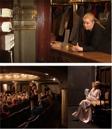 Curtain Callers ANN-SOFI SIDÉN in collaboration with Jonathan Bepler 10.03. – 14.04.2012 Eröffnung: Freitag, 09. März, 19 - 21 Uhr Opening: Friday, 09 March, 7 - 9 pm press release (please scroll down for English version) Galerie Barbara Thumm freut sich die vierte Einzelausstellung von Ann-Sofi Sidén, in einer Kooperation mit dem amerikanischen Komponisten Jonathan Bepler, präsentieren zu können. Curtain Callers wurde im Royal Dramatic Theatre in Stockholm aufgenommen. Dieser grossformatigen Produktion resultierten mehrere Arbeiten in unterschiedlichen Formaten. Zum einen der Film Curtain Callers und zum anderen Curtain Callers (Entracte), eine 5-kanalige Video-Installation, sowie ein episches Fotopanorama und mehrere Diptychen, welche in den Räumen der Galerie Barbara Thumm präsentiert wird. Curtain Callers untersucht die Institution des zeitgenössischen Theaters. Sidén bedient sich dabei einer Fülle von aufgenommenem Video- und Soundmaterial und umschreibt damit die Kernpunkte fiktionaler Konstruktion und deren stetig wandelnder Prozesse, flüchtige Momente von Kreation wie sie in den einstudierten Ritualen zwischen Bühne und Publikum entstehen. An der Produktion hat ein 600 Personen starker Chor mitgewirkt, die Akteure und gleichzeitig Theaterpublikum darstellten und den lebendigsten und zentralsten Anteil an der Komposition, dem Film und der Installation, ausmachen. Curtain Callers bietet eine Komplexität, die in seiner Thematik und formalen Sprache vieles aus früheren Arbeiten von Sidén aufgreift. Die Auslotung und Erfindung fiktionaler Charaktere finden sich schon in Filmen wie Queen of Mud (QM), der Fiktion des alter egos Sidéns. Ihre ausgiebige und detailierten Studien räumlicher Widersprüchliche zeigten autarke Welten, deren Bewohner von eigentümlichen Hierarchien bestimmt wurden. In 3 MPH (From Horse To Rocket), nimmt Sidén die Indentität eines alten Abenteurers und Entdeckers ein, der durch Texas reitet. Dabei portraitiert sie kulturelle und geographische Aspekte der USA und kommentiert deren zeitgenössisch beschleunigten Lebensaspekte. Sidén entwickelte in der Postproduktion von 3 MPH eine filmische Erzählform des Multi-Channel-Panoramas, die in ihrer ganz eigenen Art das bewegte Bild und das Filmstill miteinander verwebt. Curtain Callers verfeinert diese Erzählstruktur noch mehr, blättert das Innere des Theaters, das Gebilde in dem Fiktion ensteht auf, schneidet es in visuelle Scheiben die zwischen Publikum und Backstage wandern. Die Bilder verbinden sich mit Jonathan Beplers 360-Grad-Surround-Komposition. Es entsteht eine feine Balance zwischen Komposition, zufälligem Sound und ständig neu sich kombinierenden Szenen der vielschichtigen Erzählungen, die sich in der täglichen Routine des Nationaltheaters entwickeln, dem Theater in dem Ingmar Bergman seine Karriere began und beendete. Curtain Callers wurde von Mobile Art Productions (MAP) produziert und wurde zuletzt im Januar 2012 in Göteborg im Rahmen des Internationalen Filmfestivals Göteburg gezeigt. Im März erscheint das Buch Curtain Callers im neu gegründeten Verlag Art & Theory Publishing mit Unterstützung der Galerie Barbara Thumm. Das Buch gestaltete Stefania Malmsten und beinhaltet Texte von Jörg Heiser, Ann-Sofi Sidén, sowie einem Interview mit den Künstlern von Magdalena Malm. Sidén erhielt für ihre komplexen und intensiven Videoinstallationen internationale Anerkennung. Sie wurde unter anderem auf der Venedig Biennale, der São Paolo Biennale und der Carnegie International (Pittburgh), sowie in den Institutionen Musee d’Art Modern de LaVille de Paris, The Hayward Gallery (London) und dem Moderna Museet (Stockholm) gezeigt. 2012 erhielt Ann-Sofi Sidén den Dagens Nyheters Culture prize 2011 in der Kategorie der Künste. Sidéns Arbeit befindet sich in hochkarätigen internationalen Sammlungen, wie dem KIASMA, (Helsinki), dem Magasin 3 Stockholm Konsthall, der MOCA North Miami, dem Moderna Museet (Stockholm), der Sammlung Goetz (München) und dem Winterthur Museum (Schweiz). Ann-Sofi Sidén war in den Jahren 2001/2002 im Rahmen des DAAD Programmes in Berlin. Sie lebt und arbeitet in Stockholm. Jonathan Bepler komponiert Musik für Film, Tanz und seine eigenen Audio-Installationen. Besonders bekannt machten ihn die Kompositionen zu Mathew Barneys Creamaster Filmen. Mit Ann-Sofi Sidén arbeitete er schon 1997 für den 35mm Film QM, I Think I Call Her QM zusammen. Im Rahmen der Ausstellung Curtain Callers findet am Samstag, den 17. März 2012, eine Buchpräsentation mit Video-Screening und Künstlergespräch mit Ann-Sofi Sidén, Jonathan Bepler, Jörg Heiser (Chefredakteur des Frieze Magazine) und Anna Eriksson (Herausgeberin des Buches Curtain Callers) als member event im Soho House Berlin statt. Es sind noch einige zusätzliche Plätze verfügbar. Bei Interesse, bitte Anmeldung bis zum 10. März 2012, an: [email protected]. __ The Barbara Thumm Gallery is pleased to present the fourth exhibition by Swedish artist Ann-Sofi Sidén, this time in collaboration with American composer Jonathan Bepler. Curtain Callers was recorded at The Royal Dramatic Theatre in Stockholm. This large-scale production is now presented in two parts: a film, Curtain Callers, and a 5-channel video installation, Curtain Callers (Entracte), to be shown together with a photo panorama and diptychs in Galerie Barbra Thumm. Curtain Callers examines the contemporary institutional theatre from within. The material is drawn from a wealth of recorded images and sounds, and reaches into the very core of fiction building and its ongoing processes, tracing the fleeting moment of release in the rehearsed ritual between the audience and the stage. The production included the staging of 600 choir singers serving as the theatre audience whose voices constitute a vital part of the musical score for both the film and the installation. Curtain Callers offers a complexity, thematically, formally and spatially that can a