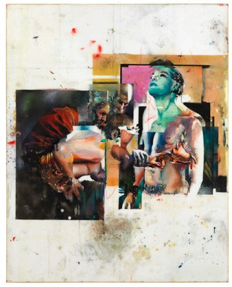 Christian Hoischen Ohne Zweifel 12 September - 20 October, 2012 Eröffnung mit BBQ / Opening with BBQ: Dienstag / Tuesday 11 September, 6 - 9 pm press release (please scroll down for English version) Christian Hoischens Bilder sind von einem alles durchdringenden Eklektizismus. Angefangen beim Material: Die Überlagerung von Styropor und Epoxidharz hat etwas von einem Surfbrett, in das der Künstler mit Lackfarben wolkige, düster-süßliche Bildwelten eingeschrieben hat. Die hautähnliche Haptik verleiht ihnen etwas Objekthaftes, was sich aus Hoischens Arbeit als Bildhauer ableiten lässt: In verfremdeten Autos, Lampen oder abstrakten Assemblagen balanciert er zwischen Ready-Made, Design und Kunstfigur – Dinge, die seltsam belebt erscheinen, als wären sie an einem Filmset zurückgelassen. Auch in Hoischens Malerei scheint der Mensch an- und abwesend zugleich. Seine Motive, die er mit einem Blick für Altbekanntes im Internet sucht, transportieren eine fragmentierte Vergangenheit, sei es Barock, Pop Art oder Psycho-Thriller. Teilweise direkt vom Monitor abfotografiert, druckt Hoischen sie auf Papier aus, wo sie die Schablonen bilden, von der aus er sie erst auf transparente Gummimatten überträgt und dann spiegelverkehrt auf Epoxidharz abpaust, den eigentlichen Bildträger. Das Resultat sind Überlagerungen von Signets voller kunst- und filmhistorischer Verweise: Caravaggios Der ungläubige Thomas trifft auf Romy Schneider, eingefasst von geometrischen Farbfeldern. Der Death-Metal-Schriftzug von David Lynchs Psycho-Streifen Inland Empire ziert schlafende Nackte vor einem Spiegel mit Goldrahmen. Ein leerer modernistischer Stuhl wirkt, als hätte ihn kurz zuvor einer von Francis Bacons Päpsten verlassen. Eine Rokokovase erinnert an eine Urne. Tatsächlich ist Hoischens Malerei eine sanft verschwommene, morbide Mischung aus Gothic-Kitsch und Pop Collage, ergänzt durch Flecken und Farbkleckse, die sich wie informelle Fußnoten über das fahle Licht der Freiflächen verteilen. Selbst atelierfrische Bilder wirken daher wie ramponierte Zeugnisse der Postmoderne. Verfall und Historismus, die klassischen Themen der Dekadenz-Ära gegen Ende des 19. Jahrhunderts, kondensiert Hoischen in einer Sprache, die das 21. Jahrhundert als Wiedergänger dieser Zeit entlarvt. Christian Hoischen’s pictures are marked by an all-encompassing eclecticism. This starts with his materials: the layering of polystyrene and epoxy resin is somewhat like a surfboard, upon which the artist has used varnish to inscribe cloudy worlds of images both sombre and sweet. Their feel, similar to skin, gives them an object-like character. This is derived from Hoischen’s work as a sculptor: in his strange, alienated cars, lamps, or abstract assemblages, he walks the line between the ready-made, design and art – things that appear strangely animate, as if they had been left behind on a film set. In Hoischen’s paintings, too, human beings seem both present and absent. He searches for his motifs on the internet, with an eye for the old and familiar. These motifs convey a fragmented past, whether baroque, pop art or that of a psycho thriller. Hoischen sometimes photographs them directly from the screen, and then prints them onto paper, where they serve as templates from which they are first transferred onto transparent rubber mats and then traced, mirrored, onto the epoxy resin that forms the actual medium of the picture. Layers of signets and marks full of references to the history of art and film are the result: Caravaggio’s Incredulity of Saint Thomas encounters Romy Schneider, framed by geometric fields of colour. The death metal lettering of David Lynch’s psychological thriller Inland Empire adorns naked figures sleeping in front of a gold-framed mirror. An empty modernist chair seems as if only recently vacated by one of Francis Bacon’s popes. A rococo vase is reminiscent of an urn. In actual fact, Hoischen’s paintings are a gently blurred, morbid combination of Gothic kitsch and Pop Art collage, with spots and smudges of colour distributed across the wan light of the unpainted areas like informal footnotes. Even pictures straight from the studio thus seem like battered testaments to postmodernism. Hoischen condenses decay and historicism, the classic themes of the decadent era of the end of the 19th century, creating a language that unmasks the 21st century as a revenant of that very period. |