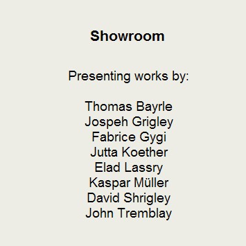 09 June 2012 - 14 July 2012 Showroom Presenting works by: Thomas Bayrle Jospeh Grigley Fabrice Gygi Jutta Koether Elad Lassry Kaspar Müller David Shrigley John Tremblay GalerieFrancescaPia Limmatstrasse 275 8005 Zürich from 3-5 pm VillaFrancescaPia Titlisstrasse 48 8032 Zurich from 6-9 pm VillaFrancescaPia marks the beginning of a new series of events and exhibitions taking place in various locations outside the rooms of the gallery. We hereby revive the past tradition of Pias Soirees at the gallery in Bern, periodically giving artists the possibility to work in other spaces. |