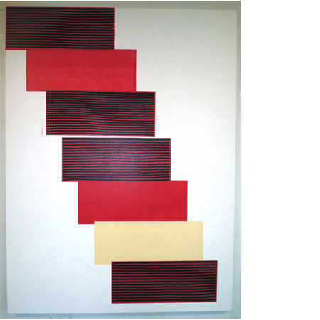 JOHN TREMBLAY Hidden in the Data August 28 � October 23, 2010 Vernissage, Friday August 27, 2010, 6 � 8 p.m. Coming soon to the Francesca Pia Gallery are six to eight new works by John Tremblay. Comprised of abstract paintings and wooden wall pieces, the exhibition concerns the precision of mechanical process and the articulation of a hand-made geometry. A veneered wall sculpture, Slot Effect, has five horizontal slots, intentionally varied and randomly distanced. These vacancies reveal the wall on which the works hang; they gesture to the floor, the ceiling, the doors, the office behind them, the structural and the theoretical network in which the artwork operates. It is on the wall that these manicured panels meet and diverge from their painterly counterparts. Undulating brush strokes approach the look of wood grain. In these paintings the geometry is of a handmade quality. Horizontal blocks of color in the artwork Motherland of Electricity begin at the upper left and, step by step, work their way to the bottom right hand corner. These resemble a diagram where rectangles and slots are surrogates for image and text. But the painting describes itself best. It is possible for abstraction to be a diagram of itself, when this happens it is moving. John Tremblay was born in Massachusetts in 1966. He lives and works in New York. Selected Exhibitions 2010 MUMOK, Pictures about Pictures: Discourses in Painting from Albers to Zobernig, Vienna 2009 Palais de Tokyo, Chasing Napoleon, Paris Centre National d'Art Contemporain de Grenoble, Portrait de l'artiste en motocycliste, France 2008 Paula Cooper Gallery, New York Selected Collections Albright-Knox Art Gallery, Buffalo, NY, USA Cabinet des Estampes du Mus�e d�Art et d�Histoire, Geneva, Switzerland DaimlerChrysler AG, Berlin, Germany Fogg Art Museum, Harvard University, Cambridge, MA, USA FRAC Poitou-Charente, Angoul�me, France |