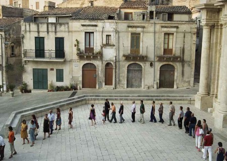 Adrian Paci The Encounter Nov. 10 — Dec. 23, 2011 Maja Bajevic Layers Nov. 10 — Dec. 23, 2011 ADRIAN PACI The Encounter Galerie Peter Kilchmann is pleased to present the fourth solo exhibition of the artist Adrian Paci. Adrian Paci was born in Shkoder, Albania, in 1969, and he immigrated to Italy in 1997. Since then he has been living and working in Milan. Apart from the new video work The Encounter Adrian Paci will be showing a freestanding mosaic piece, new paintings, works on paper and photographs. The video work The Encounter (2011) shows a man as taking a seat in the middle of a public square. Gradually, several hundred protagonists enter the square and consecutively approach the man, who stands up to shake their hands. The simple and habitual gesture of the handshake is repeated so often that it transforms itself into a meaningful ritual. While the reason for the ceremonious meeting remains unknown, the encounter between the participants becomes charged with tension. A moment of connection occurs, not only between the participants, but also between the persons and the square, which is transformed into a stage. The video work was produced in the town of Scicli on Sicily. With the 12-part series Passages from 2010 (acrylic on wood) the artist also questions traditional rituals. Here, the gesture of the handshake as the visualization of fleeting everyday encounters is again a central theme. Persons come and go, greet each other and say goodbye, and at times touch the shoulder of the person opposite. In contradiction to the video piece the twelve small-format works are a collection of single moments and thus framed by the choice of the moment, the angle, the color and the painting technique. The confrontation between painting and video questions the supposedly objective camera eye. The works are true “snap-shots”, capturing the fleeting encounter between two people, who have a reaction towards each other and then depart again, without knowing where the other is going, or what will happen in their own future. What can we decipher in a face of a person about his history, his wishes and relationships? Similar to the works The Encounter and Passages the new mosaic piece The Brothers (2011) centers on the interpersonal. Here, the viewer is drawn in; he peers into faces which he can never comprehend entirely, and that compel her to fill the empty spaces in the mosaic with her own thoughts and fictions. Adrian Paci highlights existential themes as well as mundane topics, which he combines to archive intriguing results. In his well-known work Centro di Permanenza temporanea (2007) he had two dozens people walk up a plane ramp leading nowhere, and in his video work Vajtoica (2002) he reenacted a death ritual. In Adrian Paci ʼ s artistic practice there is always a noticeable tension between the ordinary and the exceptional, the real and the fictional. His works are formed by an emotional sympathy for individual fates, while his story telling is compelling in its simplicity. Adrian Paci ʼ s works have been presented in numerous exhibitions and publications, such as the exhibition Electric Blue in Kunsthaus Zurich in 2010, for which an exhibition catalog was published. In early 2012 Adrian Paci ʼs works will be shown in an exhibition in MAXXI ((Museo nationale delle Arti del XXI Secolo) in Rome. Other future projects include shows for the art space Jeu de Paume in Paris and the La Conservera in Murcia, Spain. Further publications worthy of notice include Adrian Paci by Kunstverein Hannover (2008) and another publication by the same title from the Galleria Civica di Modena (2006). All catalogs are available through the gallery. MAJA BAJEVIC Layers Galerie Peter Kilchmann is pleased to present new works by Maja Bajevic in its project space. Maja Bajevic was born in Sarajevo in 1967. She currently lives and works in Sarajevo, Paris and Berlin. In her artistic practice she questions fixed worldviews by showing how political structures and moral concepts are bound to historical settings. Maja Bajevic broaches the issues of History and Identity as unfulfilled constructions, unsteady and ever changing. The series Layers (2011) attest to the interest with which Maja Bajevic has followed the protests and tumults in Europe and the USA during the last months. The photographic images, pinned on canvas and embroidered, are exhibited hanging on a clothing line. The pictures were taken by journalists, who were present at the demonstrations. Maja Bajevic purchased the photos and left the titles as they had been, such as “M06D0501 – Mai2069”. The added embroideries of birds and flowers stand in contrast to the images and refer to values of tradition, continuance and a middle class resemblance of “normality”; a balance which has been destabilized through the protests. The artwork confirms that no system is unfailing, no ideal timeless and no truth untouchable. “Is change the only constant in history?”, Maja Bajevic seems to ask. The installation To be continued is made up of a machine with the visual appearance of an old-fashioned steam engine. The machine continually emits steam on which political and economic slogans are projected. The slogans become visible only for a short time on the visionary “steam curtain” before dissolving again. Maja Bajevic went through extensive research for this work, looking for principles that shaped the last century and remain unquestioned even today. To be continued makes all ideals equal by decontextualizing them and having them vaporize before our eyes, only to be succeeded by new concepts. The work points to the last utopias of the last century and the uncertainty their failures have made room for. On the one hand politics and economy still make use of the same slogans as before, but as ever more failures and crises become public even the last certainties seem to crumble. The motor behind the creation of ideas will not be stopped and so Maja Bajevic 