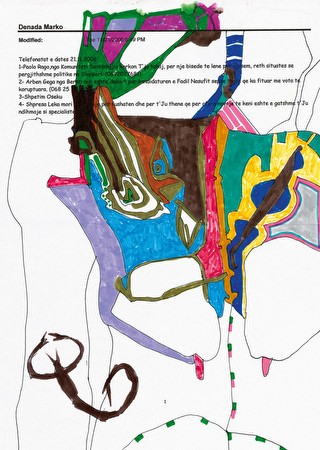 Anri Sala & Edi Rama: Creating Space Where There Appears To Be None 18 Januar - 16 März 2013 Eröffnung: Donnerstag, 17 Januar 2013, 19-21 Uhr Künstlergespräch um 19.30 Uhr: Okwui Enwezor, Direktor im Haus der Kunst München im Gespräch mit Anri Sala und Edi Rama Die Galerie Rüdiger Schöttle freut sich, das Jahr 2013 mit einem Ausstellungsprojekt des Künstlers Anri Sala zu beginnen. Seit 2000 stellt die Galerie Rüdiger Schöttle Anri Sala regelmäßig aus. Bisher waren ausschließlich Filminstallationen präsentiert, die aktuelle Ausstellung konzentriert sich nun auf das Projekt ‚Creating Space Where There Appears to Be None’, das in Zusammenarbeit mit dem Künstler Edi Rama entstand und zu dem Gesprächsaufnahmen und eine Reihe von Zeichnungen von Edi Rama und Anri Sala gehören. Edi Rama, mit Anri Sala befreundeter Künstler und Politiker, beteiligte sich nach Zusammenbruch des kommunistischen Regimes aktiv an den ersten Demokratiebewegungen Albaniens. Nach einem Aufenthalt in Paris, bei dem er sich ganz seiner künstlerischen Karriere widmete, kehrte er in den 1990er Jahren nach Albanien zurück und war unter anderem von 1998 bis 2000 Minister für Kultur, Jugend und Sport, danach Bürgermeister von Tirana von 2000 bis 2011. Seit 2005 ist er Vorsitzender der Sozialistischen Partei (SP). "Creating space where there appears to be none between the foreground and the background of a drawing, an in-between dimension: through the rabbit hole we freefall to unfold the compressed space underlying a doodle over the papers of a politician. Duty-freed from the dire reality of their pages, Edi Rama's doodles take on a repetitive form like that of a "reality planner" whose bird's eye vision of a landscape demarcates neighbourhoods as zones of thought through the cartography of colour. The lines curve and curl, never remaining straight for too-great a distance, loosely binding the day-to-day. Over the past 10 years, these automated abstractions have connected the present to the otherwise unintelligible future." Anri Sala, 2010 ‚Creating Space Where There Appears to Be None’ beruht auf einem gleichnamigen Projekt aus dem Jahr 2010, bei dem Anri Sala von der Berliner About Change, Collection eingeladen war, in einer Art Ateliersituation ein Kunstprojekt zu erarbeiten. Sala hatte damals den befreundeten Künstler Edi Rama eingeladen und das Studio nicht nur als Ausstellungsort, sondern auch als Ort zur Aufnahme von Gesprächen mit weiteren Gästen genutzt: es wurden Dialoge zwischen Edi Rama und dem Kunsthistoriker Michael Fried, dem Künstler Philippe Parreno, dem Philosoph Marcus Steinweg und dem Aktivisten Erion Veliaj aufgenommen. Die aktuelle Ausstellung in der Galerie Rüdiger Schöttle ist als Dokumentation und Fortsetzung gleichermaßen zu sehen. Die Dialoge der damals mitwirkenden Personen werden im Erdgeschoss der Galerie an Hörstationen präsentiert. Zur Ausstellungseröffnung wird ein weiteres Gespräch aufgezeichnet und setzt die Konversationsreihe fort: Edi Rama und Anri Sala sprechen mit Okwui Enwezor, Direktor des Haus der Kunst, München. Im ersten Stock der Galerie ist die Serie der ‚Inversions’, Resultat der Zusammenarbeit zwischen Edi Rama und Anri Sala, ausgestellt. Die sogenannten ‚doodles’ (zu Deutsch ‚Kritzeleien’) zeichnet Edi Rama während seiner beruflichen Tätigkeit als Politiker, also während Sitzungen oder Telefonaten - dabei bleibt vorerst offen, ob die Zeichnungen Produkte größter Aufmerksamkeit oder Resultate tagträumerischer Abwesenheit sind. Wie Lavaströme ergießen sich Linien, Formen und Farben auf dem Papier und können so als Sinnbild unserer assoziativen Gedankenflüsse gelesen werden. Anri Sala antwortet auf die Zeichnungen seines Freundes und entwickelt seinen eigenen Blick darauf: er extrahiert die Farben, Formen und Linien und kreiert neue Kompositionen. In einem weiteren Schritt konfrontiert er diese neuen zeichnerischen Gebilde mit jenen Edi Ramas: gespiegelt legt er sie auf die Rückseite der Zeichnungen. Die gerahmten Zeichnungen sind – um Vorder- und Rückseite betrachten zu können – senkrecht zur Wand gehängt. Anlässlich der Ausstellung wird eine Publikation veröffentlicht, in der sich Anri Sala mit verborgenen Beziehungen und unterschiedlichen Realitätsschichten auseinander setzt. Den Zeichnungen Edi Ramas und seiner ‚Inversions’ stellt er internationale, nationale und lokale Nachrichtenmeldungen sowie Zitate aus Aleksandr Rodchenko's Tagebuch ‚Experiments For The Future’ (1911-1956) gegenüber und eröffnet damit neue Verbindungen. Die Publikation wird zudem die vier Gespräche mit Michael Fried, Philippe Parreno, Marcus Steinweg und Erion Veliaj beinhalten. Anri Sala wurde 1974 in Tirana geboren und lebt und arbeitet in Berlin. Er hatte u.a. Einzelausstellungen im Museum for Contemporary Art Miami, in der Serpentine Gallery London, im Centre Pompidou Paris und im Louisiana Museum for Contemporary Art Humlebæk/Dänemark. 2012 war er Teilnehmer der dOCUMENTA (13) in Kassel, 2013 wird er Frankreich bei der Biennale in Venedig repräsentieren. In München ist bis 10.2.2013 seine Arbeit ‚Long Sorrow’ in der Ausstellung ‚ECM - eine kulturelle Archäologie’ im Haus der Kunst München zu sehen. Termin Künstlergespräch am 17.1.2013, 19.30 Uhr: Okwui Enwezor, Direktor im Haus der Kunst München im Gespräch mit Anri Sala und Edi Rama english Anri Sala & Edi Rama: Creating Space Where There Appears To Be None January 18 – March 16, 2013 Opening: Thursday, January 17, 2013, 7 – 9 pm 7.30 pm: Okwui Enwezor, Director of the Haus der Kunst, Munich, Anri Sala and Edi Rama in conversation Galerie Rüdiger Schöttle is pleased to open 2013 with an exhibition project by the artist Anri Sala. Galerie Rüdiger Schöttle has been regularly exhibiting Anri Sala’s work since 2000. These exhibitions have so far been confined to his film installations. However, the current exhibition is now concentrating on