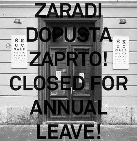 CLOSED FOR ANNUAL LEAVE! 22. 1. � 8. 2. 2009 Participating artists: Damijan Kracina, Tanja La�etic, Polonca Lov�in, Irena Pivka, Tadej Pogacar, Sa�o Sedlacek, son:DA, Tina Smrekar, Miha �trukelj, Toma� Toma�in, Matej Andra� Vogrincic. Curator: Alenka Gregoric Co-curator: Tev� Logar A variety of reasons influences the rationale of an exhibition. An exhibition often reflects the affinity of the author of the concept, be it an artist or curator. It is often the result of a current situation, even of a wish to swim with the current art flow, which constantly changes course and, consequently, the exhibition programs of institutions. An exhibition can also act as a trigger, or is the consequence of a reflection, of most of the society and environment we live in. This exhibition was instigated by the participation of �kuc Gallery in a two-year project, Land of Human Rights, whose concept stems from the Universal Declaration of Human Rights, which it addresses through the prism of art. The show also logically continues and completes the story begun by �kuc Gallery within the scope of the Land of Human Rights project with the Article 23 exhibition last year. To avoid representational approaches and the usual selection of works of art, the exhibition Closed for Annual Leave is 'tediously' declarative in form. It focuses on the specifics of the local art scene and seeks to avoid presenting artistic projects on the issue, which usually flirt with activism. Thus, it does not enable direct contemplation about to works of art, but invites visitors to think. The idea or concept of the exhibition is rather simple. Collaborating artists received a symbolic amount to enable them a day of paid leave, while the gallery staff took the right to rest and have free time. The doors of the gallery will remain closed throughout the duration of the exhibition, as the concept is precisely what is indicated by the title: Closed for annual leave. The gallery will be closed for three weeks, and not only to the public � the gallery staff will do only what is absolutely necessary and go on holiday, or at least stay at home most of the time. The guiding principle of the exhibition is �Everyone has the right to rest and leisure, including a reasonable limitation on working hours and periodic holidays with pay.' The statement is not a figment of the imagination, or a derogatory remark aimed at an individual or a social group, but a sentence from Article 24 of the Universal Declaration of Human Rights of 1948. Today, this can only evoke a bitter grin, as it is absurd in its having entirely positive intentions, but seems comic or tragic-comic when applied to real life, because in the case of 'self-employed cultural workers', it is far from reality (all participating artists have the status of self-employed cultural workers). The exhibition project is not an appeal to the authorities to change things, a lament over our destiny, or an attempt to present ideas for resolving the situation; we have simply taken time off to rest. And, naturally, we do not fool ourselves that this can change reality. Closed for annual leave is a statement we were used to when we lived in socialism, but is unimaginable in the era of capitalism. A gallery is no exception. As we depend on public funds, which we have to apply for every year, we cultural workers in the non-government sector are forced to produce too much. Every year we can easily fall into a trap, as (too) few applications usually mean less money, and therefore the scope of production exceeds the number of staff of the institution who can carry out the program well and independently. In this respect, Closed for annual leave will serve as an 'excuse' for the leisure time or holidays of the gallery staff � because we cannot afford paid leave on the burden of the government, because we could not justify this expense to our backers, which has not been earmarked for self-employed workers in culture, students and the unemployed. But we can enable a day off to artists. We wanted to enable a day of paid leave for each of them, and the transferred amount was paid as royalty for participation in an exhibition which is acceptable according to the legislation of our backers. It is up to the artists as to how they take advantage of that day, they can do what they like, as we will not ask for any reports, which is usually something that cultural workers, recipients of public funds, waste heaps of time on. After all, �kuc Gallery is closed for annual leave. |