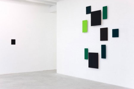 G�NTER UMBERG NOVEMBER 29, 2008 - JANUARY 24, 2009 OPENING NOVEMBER 28, 2008 Galerie Nordenhake is pleased to present a solo exhibition by German artist G�nter Umberg. Here, Umberg continues his personal investigation of painting in a show that combines recent and earlier works. Umberg is one of the major figures among contemporary artists questioning notions of abstraction, perception and materiality in painting. He started to paint in the 1970s, from the outset creating monochromes with unconventional materials and supports. Using semi-carbonized plant and animal material to prepare his own pigments, the artist has developed variations labeled, for example, �grape black�, �bone black� and �ivory black�. The result is a gradation of black shades: the grape derivative is tinted slightly brown, while the ivory is cast in a cooler blue tone. Painting on such surfaces as wood or sometimes aluminium, Umberg has developed a process involving repetitive pigment layering. This patient process can extend over the course of months or even years. The end result is a fully integrated painting structure, where raw materials are transformed into a picture. While the works serve as individual expressions of the artist�s p! ainterly actions, they do not communicate anything personal or betray any traces of an individual style. Through the intensive act of layering pigment, Umberg incorporates physical operations as an imperative part of his artistic practice and adds an intellectual dimension to his technical process. In the first exhibition space, Umberg explores a new mode of serial display and presents a large group of paintings isolated on one wall. Using the span of the wall, he interposes black pigment paintings - which at this point have become his signature style - with smaller works in different shades of green. Together, the pictures can be perceived as a cohesive group that emerges from relations and interactions between each singular work. Simultaneously, these works can be viewed as individual pieces, each of which echoes an apparently similar one in an effort towards approximation. Painted on wood with variable depths, the hanging distances them further from the wall and projects them into the space of the room. In effect, this initiates a dialogue, bridging the gap between observer and picture. On view in the second space is a diptych facing a single painting in a nearly square format that is quite frequently used by the artist. Umberg considers installation to be part of the artistic process, and consequently always installs his paintings himself. He does not conceive of the exhibition space as a neutral container, but works actively with the gallery�s architecture and considers all possibilities of presentation. He thus invites us to look carefully at his paintings, asking us to take our time with them. His paintings not only create a visual experience, but also require the viewer�s active observation involving the entire body. Through their format and placement, G�nter Umberg�s paintings pull our attention towards the absolute opaqueness of their rich surfaces. However, it is only by engaging with the works as they extend into the gallery space that we might fully apprehend the paintings� materiality as spatial experience. G�nter Umberg was born in Bonn in 1942. In 1982 he met painter Joseph Marioni in New York and together they formulated the principles of �Radical Painting�. 1982-88 he supervised the �Raum f�r Malerei� in Cologne and participated in exhibitions with Brice Marden, Josef Albers, Marcia Hafif, Robert Ryman and others. He has had numerous exhibitions in Europe and in the USA. In 1993, he began to curate shows for renowned institutions, including, �Body of Painting�, Museum Ludwig in Cologne, 2000 and �What�s new Pussycat�, MMK Frankfurt/Main, 2005 where he was invited to develop complex projects as both an artist and curator. His most recent solo exhibitions were at Haus Konstruktiv, Z�rich; St�dtische Galerie, Karlsruhe, both 2006. In 2005 he was awarded with the �Fred Thieler Preis f�r Malerei�, which was accompanied by a major exhibition at Berlinische Galerie, Berlin. He first exhibite! d with Galerie Nordenhake in 1985. G�NTER UMBERG 29. November 2008 - 17. Januar 2009 Er�ffnung 28. NOVEMBER 2008 Der deutsche K�nstler G�nter Umberg kombiniert in seiner Einzelausstellung in der Galerie Nordenhake neue Arbeiten und �lteren und setzte damit seine pers�nliche Untersuchung der Malerei weiter fort. Umberg z�hlt zu den Hauptvertretern zeitgen�ssischer Malerei, die sich Fragen nach Abstraktion, Wahrnehmung und Materialit�t des Mediums widmen. Als er in den 1970ern zu malen anfing, begann er gleich mit monochromen Malereien und arbeitete mit unkonventionellen Materialien und Bildtr�gern. Umberg stellt seine Pigmente aus pflanzlichen und tierischen Halbverkohlungen selbst her und vermag so Schwarzpigmente unterschiedlicher Farbigkeit zu erzeugen; das Rebenschwarz ist z.B. etwas br�unlicher gef�rbt, w�hrend das Elfenbeinschwarz bl�ulicher und k�hler wirkt. Umberg entwickelte ebenfalls ein eigenes Malverfahren, bei dem er das Pigment geduldig in mehreren Schichten auf Bildtr�ger aus Holz oder manchmal auch auf Aluminium auftr�gt. In diesem wiederholten, langwierigen Schichtungsproze�, der Monate oder sogar Jahre andauern kann, wird das Pigment zu einem Farbv! olumen verdichtet, das rohe Material in ein Bild transformiert. Obgleich seine Bilder individueller Ausdruck seiner malerischen Handlungen sind, vermitteln sie nichts Pers�nliches oder zeigen irgendwelche Spuren einer individuellen Handschrift. �ber den intensiven Akt des Schichtens f�hrt Umberg die physische Handlung als unabdingbaren Teil in seine k�nstlerische Arbeit ein und reformuliert so den technischen Malvorgang als intellektuellen Proze�. Im ersten Ausstellungsraum erkundet der K�nstler eine neue Form serie