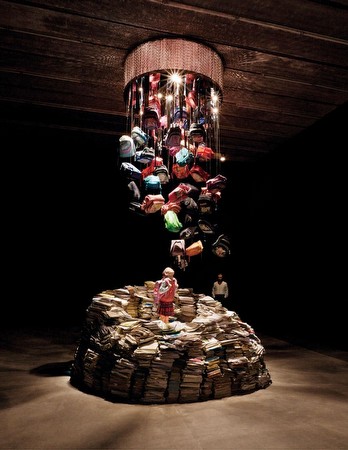 Li Zhanyang “The Nightmare” Galerie Urs Meile, Beijing-Lucerne, Beijing Opening: Saturday, March 3, 2012 - 4 to 7 pm Exhibition: 3 March – 29 April 2012 Galerie Urs Meile is pleased to announce the opening of a solo exhibition of Li Zhanyang (*1969 in Changchun, China; lives and works in Chongqing and Beijing, China) in our Beijing gallery, entitled “The Nightmare”. In China, a fast-growing global economic superpower with a population of over 1.3 billion people, being a child means learning from a tender age how much weight is placed on classroom education as a way to distinguish oneself and be successful in life. It means enduring a very busy daily study schedule, an endless stream of exams, and the unceasing struggle in pursuit of outstanding scholastic achievements. It means constant pressure, as well as fierce competition. As an art professor and the father of a nine-year-old girl, artist Li Zhanyang is very familiar with the Chinese educational system. In his one-man show entitled “The Nightmare”, Li Zhanyang draws inspiration from the school experiences of his daughter and countless other Chinese children, metaphorically transposing it into the two large scale installations featured in the exhibition. In one of the works, the scene comes into sight like a disquieting oneiric vision suspended in darkness, stillness and complete silence. In the middle of the space, the life-size fiberglass sculpture of a schoolgirl is portrayed looking up at a mass of schoolbags and sharp metal blades that loom threateningly from above. When seen from afar, her head is the only visible part of her body, emerging from the middle of a well made of three tons of examination sheets. The impossibility for the girl to escape from a prolonged condition of imprisonment and impending danger conveys a growing feeling of helpless distress. In the second installation by Li Zhanyang, the artist fills a wall with a multitude of those triangular red scarves that are given to only the most achieving Chinese primary school students as a symbol of the national flag and the “Young Pioneer” movement. If on the one hand red scarves serve as an incentive for the students to improve their motivation and performances, on the other hand they might be seen as a discriminatory instrument that undermines the self-confidence of the underachieving children. With their ambivalent nature, red scarves epitomize an official label for acknowledgment, excellence and success that every child is demanded to attain. IMAGES 1. Li Zhanyang “The Nightmare” (schoolgirl and Li Zhanyang) 2011/2012 mixed media installation (fiberglass sculptures of a schoolgirl and a man; examination sheets; schoolbags; sculpted stainless steel) overall installation dimensions variable (schoolgirl sculpture: 130 x 50 x 40 cm; man sculpture: 175 x 60 x 36 cm) Exhibition view at Galerie Urs Meile, Beijing-Lucerne, Beijing, China, 2012 [Courtesy: Galerie Urs Meile, Beijing-Lucerne] 2. Li Zhanyang “The Nightmare” (red scarves) 2011/2012 mixed media installation (pencils, red scarves) dimensions variable Exhibition view at Galerie Urs Meile, Beijing-Lucerne, Beijing, China, 2012 [Courtesy: Galerie Urs Meile, Beijing-Lucerne] 3.Li Zhanyang “The Nightmare” (red scarves) 2011/2012, detail mixed media installation (pencils, red scarves) dimensions variable Exhibition view at Galerie Urs Meile, Beijing-Lucerne, Beijing, China, 2012 [Courtesy: Galerie Urs Meile, Beijing-Lucerne] |