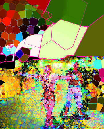 Daniele Buetti: Oh Boy ! Oh Boy ! April 24th until June 12th 2010 During his visit to the Monreale Cathedral in Palermo, Daniele Buetti was deeply marked � who wouldn't be? � by its mosaics dating from the 12th century that grace the interior's walls. Beyond the aesthetic emotion, he no doubt also recognized a kinship as to form with his own work, which for several years now has integrated qualities of luminous energetic flux, like a ballet of photons on golden backgrounds set down by Byzantine artists. But for his own mosaics, Daniele Buetti had recourse to none of these precious materials. The images � found ones, for the most part � are glued to sheets of Plexiglas, then cut-out by laser into multitude fragments in various shapes and sizes. The compositions, very colourful, are of monumental format and transpose exploded imagery in modern materials. The subjects are not easily decrypted � an effect carefully sought-for by Buetti, who prefers suggestion to overt demonstration, inspired by Christian iconography and more particularly in saintly representations � marked by a form of violence within which transpire submission, repression and subjugation. This idea of constraint is again taken up in a large drawing, one that also marks the transition between the current exhibition and previous works. The suspended human form, hair weighed down by a stone, evokes the morbid iconography of martyrs, in a style both meticulous and cold. Further, a personage who holds between his hands the energy radiating outwards from his body: a retouched photograph, referring as much via its iconography as its technique to digital collages from the series 'Is My Soul Losing Control'. Images attached to outsized placards, faces whose eyes exude a flux of immaterial tears, evoke the light-boxes conceived by Buetti: set to form in an installation at once fragile by virtue of its materials and imposing by virtue of its size, they acquire a quite particular significance. As for the portrait 'overloaded' by an indefinable form, thick matter of oil-colours on photographic paper, it is characteristic of Daniele Buetti's interest for the grotesque and the tragicomic, for the grand human comedy of our existence. The title chosen by the artist for his exhibition is pregnant with ambiguity: 'Oh boy oh boy' � are we to rejoice or lament? PY Desaive Further Information buetti.aeroplastics.net April 24th until June 4th 2010 Exceptionally during ART BRUSSELS: Saturday 24th and Sunday 25th from 09.30 to 18.00 Opening hours: Tue to Fri 11-18.00 Saturday 14-18.00 closed on bank holidays |