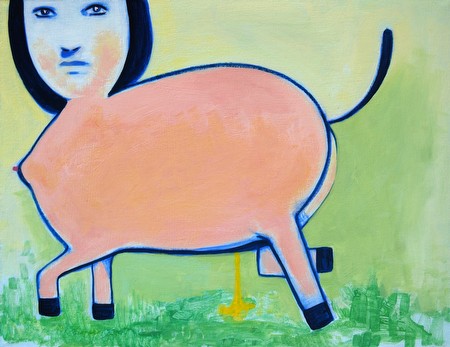 David Humphrey and Jennifer Coates: Plush Onus 1571 Lexington Ave (Btwn 100th-101st Street) New York, NY 10029 April 25th – May 24th Opening Reception: Saturday, April 25th, 7-10 pm Plush Onus: a collaboration between David Humphrey and Jennifer Coates This exhibition consists of a thirty-five minute video commissioned by the Garth Newel Music Center to accompany a live performance of Terry Riley’s piece "In C", as well as a selection of collaborative paintings by Jennifer Coates and David Humphrey. In addition the artists will present two works apiece by their own hand. Pillaging happens when we touch another person’s painting. If you are brave, you might allow someone access to your pictorial attitudes and then sit back in horror as they wield their brush with mal-intentions, slurring your ideas, coarsening your shapes, mutating your figures into dipshits, where once they were carriers of Romance and Ideology. In this annexed state, your paintings submit to bruising. Your pride is salted like a wound. It is in this place of territorial tangling that we try to have some fun and act like we don’t mind: in honor of better paintings: in honor of terseness, of fecundity, of gingerly twisted muck-ups. We don’t mind being soiled by the other, because we know “this is how it is” and “it is what it is” and “I had to.” Hands stay clean in film but software smears collaborators onto each other by means of commands, sliders and numbers plugged wantonly into little boxes. The camera punctures and cuts the sensorium so that Terry Riley’s music can bring its diatonic balm and sutures. - Jennifer Coates / David Humphrey About this collaboration, Humphrey’s and Coates’ longtime friend, artist and writer Dike Blair writes in his catalogue essay: Most artist-couples are disciplined and religious in terms of respecting aesthetic, professional and, often, social boundaries. Not so go Jennifer Coates and David Humphrey. My sense is that they’re deeply allied but revel in making both love and war along their common boundary. Socially they relish performing their roles, tamed-satyr David and potty-mouthed Jennifer. They’re a couple. David celebrates their relationship in many of his paintings, representing Jennifer, in varying degrees of recognizability, as the Goddess of Gaze. David represents himself as a polymorphously perverse youth - and he is, in fact, still vital and boyish. His cartoonish, graphic, sometimes naïve looking paintings, pretend to belie (that’s part of the pleasure of their game) the fact that they are deeply intelligent, psychological, and weird; as well as being deftly painted. While David’s paintings may induce psychic nausea, Jennifer’s evoke a gross-out sublime. I’m thinking of bulimic Georgia O’Keeffe’s. In recent paintings of food (she paints many other things) - a giant corned beef sandwich, a dissected Snickers bar - she lifts paint to unusual heights of psychedelic viscosity. Her paintings’ POV veer from one that could be through the eyes of an intestinal protozoan to something seen via the Hubble. When radically different species of artists collaborate, the mutant hybrid can be interesting simply because it’s so strange. But what happens when the gross out sublime couples with the polymorphous perverse? Jennifer and David’s offspring look like their parents and are highly functional. This shouldn’t surprise much, David was a member of Team SHaG (collaborating with painters Elliott Green and Amy Sillman) for almost 10 years and he and Jennifer moonlight together playing in a number of bands (Phrogz, Jenny Get Around, and Ham); and, after all, they’re married. Jennifer Coates is an artist, writer and musician based in New York City. Coates received her MFA from Hunter College in 2001. She has shown in various galleries in New York including Kinz, Tillou + Feigen, Feigen Contemporary and Luxe Gallery. David Humphrey is a New York artist who has shown nationally and internationally. He has received a Guggenheim Fellowship and the Rome Prize among other awards. An anthology of his art writing, Blind Handshake, was published by Periscope Publishing in 2010. He teaches in the MFA programs at Columbia and the University of Pennsylvania and is represented by Fredericks & Freiser Gallery, NY. Please join us for an artist’s reception with light refreshments on Saturday, April 25th, 7-10 pm. The exhibition is accompanied by a full-color limited edition book, designed by Ninze Chen, available for sale $40 signed or $30 unsigned. For more information please contact [email protected], or call 212.828.5700 |