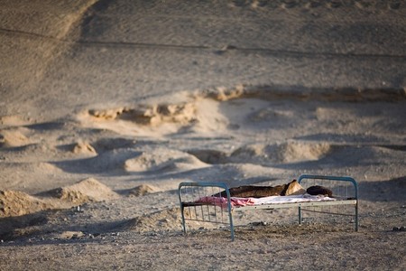 Lisa Ross AFTER NIGHT October 27 - January 7, 2012 Opening Reception: Thursday October 27, 6 - 8 pm Artist Talk: Saturday November 12, 1 pm Asya Geisberg Gallery is pleased to present After Night, an exhibition of photographs by New York-based artist Lisa Ross. For ten years, Lisa Ross has documented the ritual objects and burial sites of the Uyghurs of Western China. In her enigmatic new series After Night, she has revisited Xinjiang, and captured another aftermath -- the commonplace ritual of sleep. The photographs in this series isolate meager beds, with a few blankets or pillows, within the vast and arid desert landscape. As in her earlier work, no human is allowed into the picture frame, and we are left to decipher what or where, and even whom, the photograph suggests. In Ross's past images, twigs laced and knotted with scraps of brightly colored cloth suggested an ancient art installation. Similarly, in After Night, the viewer at first imagines that some trickster has placed the beds expressly for our visual delectation. In fact, the beds are captured exactly where they are, left by an unseen farmer tending his harvest. The artistry is at once incidental - as the beds are actually a nightly shelter - and purposefully expressive. The actual daily existence is left a mystery, and the harsh daylight in Ross's exposures reveals only the simple materiality of the beds, the intricate bedspreads, and the lunar landscape of their surroundings. Recontextualized as found objets-d'art, and elevated into aesthetic stillness, the beds have a visual urgency that transcends our mind's desire to dismiss the domestic. In giving us these glimpses of a land 14,000 miles away, Ross is an unlikely anthropologist. She thwarts knowledge with an infinite incomprehension, as these unforgiving and unfamiliar images force a distance, exaggerated by the absence of specific markers of place and time. How can we possibly imagine the day-to-dayness that follows night? Sometimes, a pair of beds breaks the eerie loneliness within this series. So spare, desolate, and startling in composition, Ross's photographs are remnants and suggestions of otherworldliness. Each new series based on the Uyghurs reinvigorates our imagination, even as Ross's images remain unpopulated. Like Scheherazade, Ross spins her tales with no end in sight. In After Night, we crave not just to know where she has travelled and what she has seen, but to discover the place that exists only in her photographs, knowing that if we arrived in that same spot, her tales would go up in thin air, just as Scheherazade's. Lisa Ross lives and works in New York. Ross received an MFA from Columbia University and a BA from Sarah Lawrence. Ross has had solo exhibitions at Kashya Hildebrand, Zurich, Daneyal Mahmood Gallery, and Nelson Hancock Gallery, and group exhibitions at Bellwether, Murray Guy, and the Bronx Museum of Art among others. Her work has received multiple reviews in the New Yorker, the New York Times, and New York Magazine. In 2012, Ross will have solo exhibitions at the Rubin Museum of Art, NY, and U.C. Berkeley. |