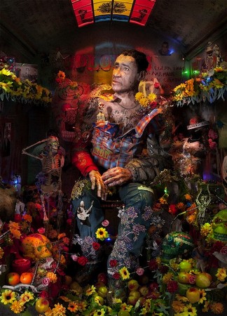 Jasper de Beijer MARABUNTA May 31 - July 7, 2012 Opening Reception: Thursday May 31, 6 - 8 pm Artist Talk & Book Reception: Saturday June 9, 4 pm Asya Geisberg Gallery is pleased to present Marabunta, an exhibition of photographs by Dutch artist Jasper de Beijer. In each of his prior series, De Beijer has created elaborate models in his studio out of paper and other sculpture materials, based on images from media and historical sources, and often concerning colonialism and its representation. In each series, he approaches the very nature of historical depiction, using varying modes of photography and questioning culturally embedded images. With Marabunta, De Beijer takes the paraphernalia of the Mexican drug war as his inspiration, particularly the mystical and visually obsessive interest in celebrating the flamboyant lives of its leaders and colorful deaths of its victims. De Beijer carves a world in Marabunta that is alarming, chaotic, and reverential - an unnerving amalgam of the omnipresent iconographies of death. Dominating our news, the cartel wars in Mexico have resulted in increasingly more outrageous acts of murder and mayhem. Bodies are beheaded, covered in warnings and signs, left in broad daylight and in city centers. A pre-existing culture of skeletons and ghosts, festive and even fanciful, coincides with the idolization of these killers and criminals, resulting in gigantic extravagant mausoleums resembling churches, and a general conflation of the gaudy shrines with those of beatific martyrs and saints. De Beijer exploits these glorified graveyards and bloody scenes of murder in his hyper-detailed, entirely fantastical staged scenes. With frenetic color and texture, a frisson of the real and media-influenced, and constant hints at the fabricated nature of De Beijer’s images, the photographer never quite allows a specific point in the continuum between the real and the imagined for the viewer to land. In De Beijer’s afterworld, the characters are eerie facsimiles of living ghosts, one foot made of plastic, and a face of duct-taped tattooed texts. The resulting strange purgatory is then multiplied: as the outsider, De Beijer forms his own mythology, interweaving distorted and refracted visions gleaned from reality. In his version of the afterlife, the dead refuse to die, and the horror of their living days shines brightly and yet ominously, refusing to be put out. The second part of the gallery is devoted to a brief overview of De Beijer’s previous bodies of work, including examples from the Riveted Kingdom (2008) and Udongo (2009) series. Please contact the gallery for further images or information. Jasper de Beijer attended the Amsterdam Hogeschool voor de Kunsten, and the Hogeschool voor de Kunsten Utrecht. His solo exhibitions include The Hague Museum of Photography, the Museum of Contemporary Art, Denver, Museum Het Domein in Sittard (The Netherlands), Gallery Nouvelles Images – (The Hague), Gallery TZR-Kai Bruckner (Dusseldorf), Hamish Morisson Gallery (Berlin), the Empire Project (Istanbul) and Studio d’Arte Cannaviello (Milano). He is part of a large number of collections, including the Bank of America, the Gemeentemuseum (The Hague), and the Rabobank collection. |